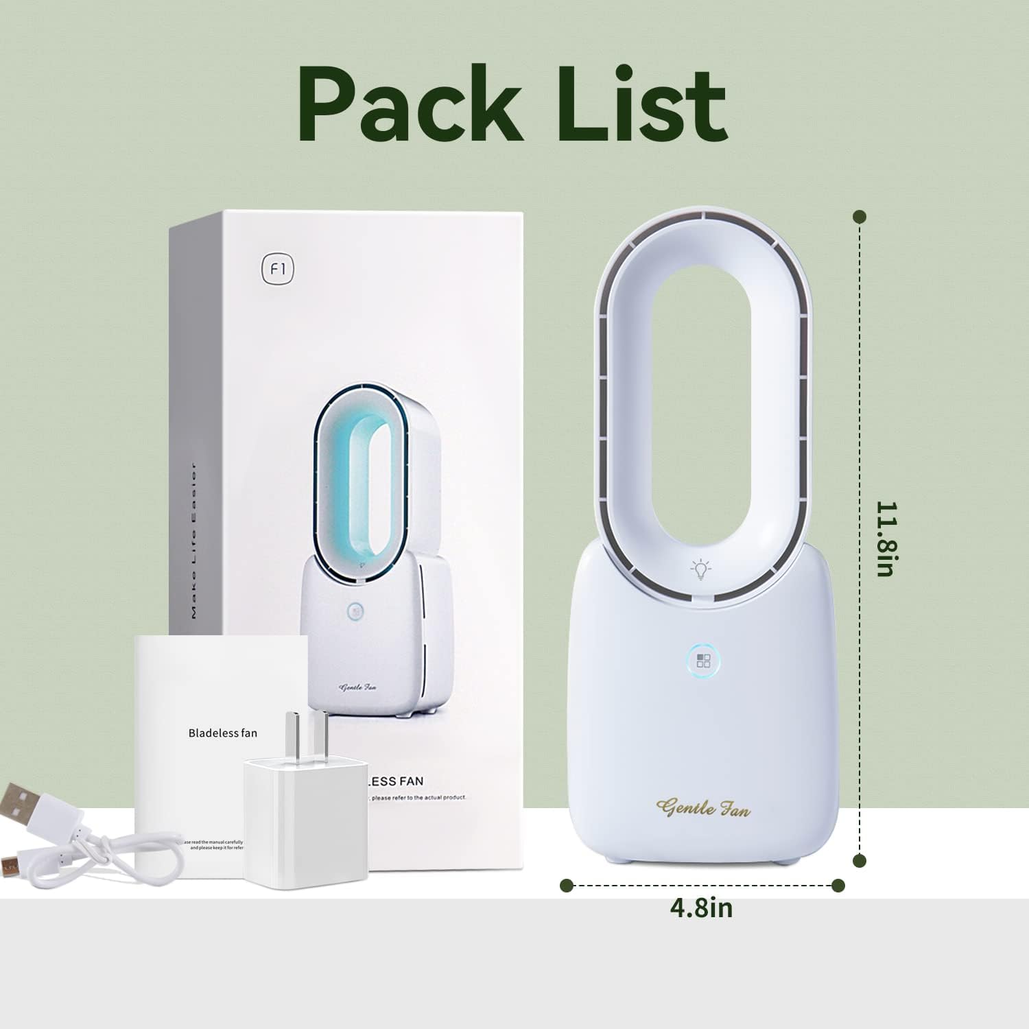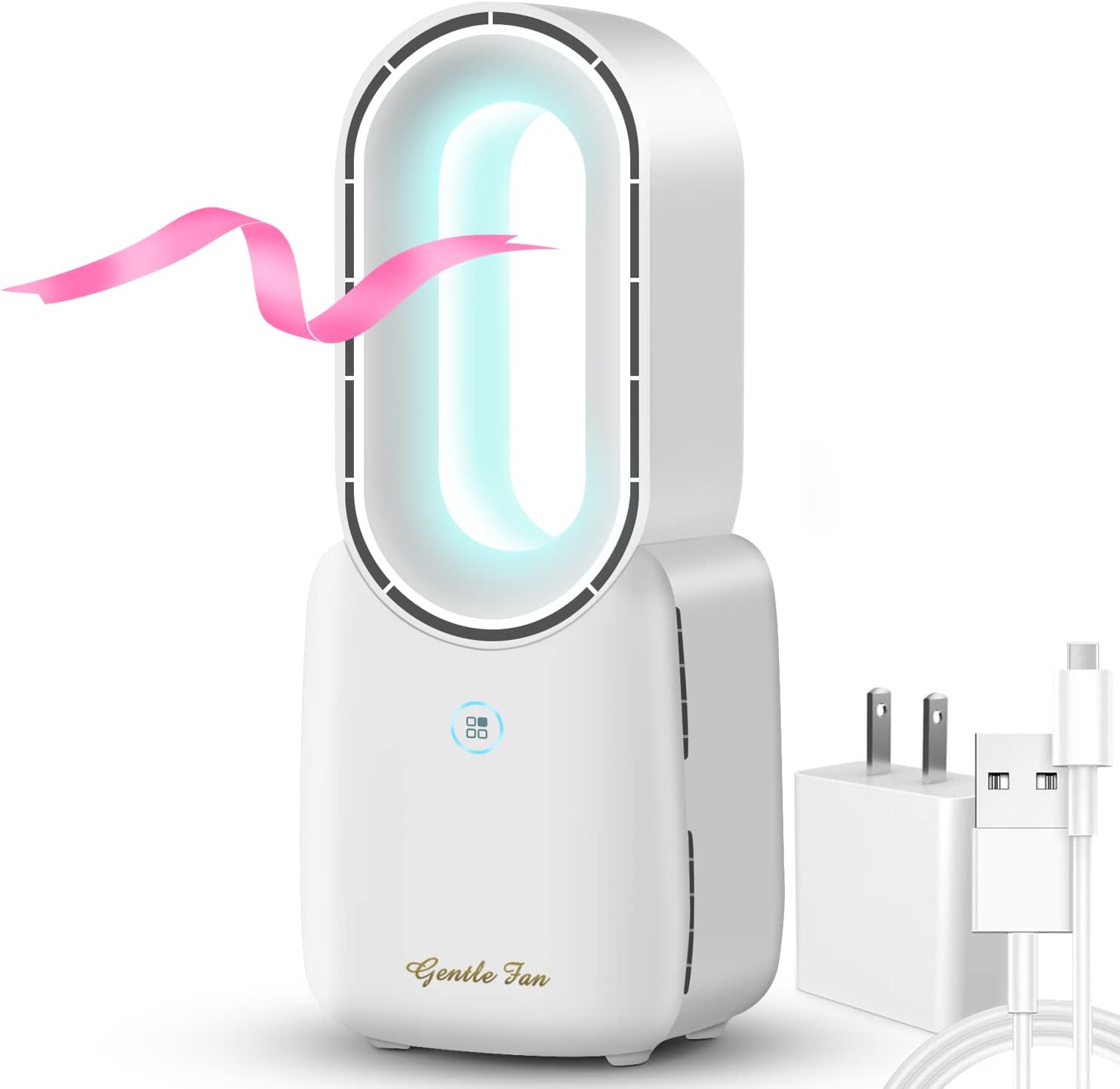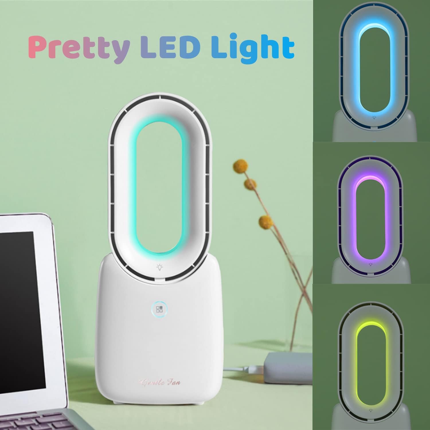Desk Fan, Quiet Bladeless Fan With Usb Adapter And 5 Colors Led Light, 3 Speeds Stylish 11.8 Inch Table Fan, Small Fan With Touch