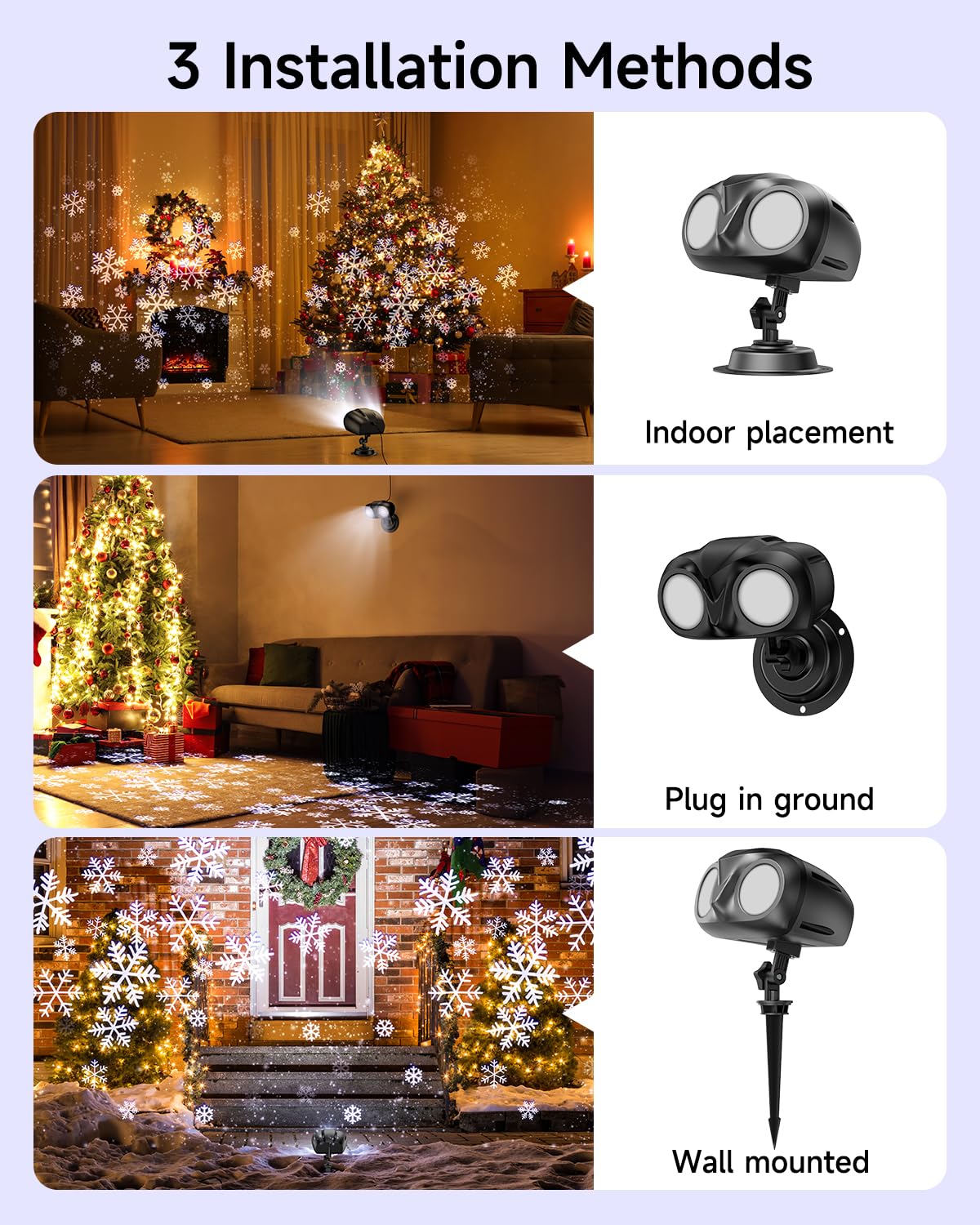 【Dynamic Snowflake Projector Light】Double head christmas lights, can be used as a light accent under the christmas tree, or arranged on the walls and ceilings of the living room, bedroom, creating a fantastic winter snow scene 【IP65 Waterproof】 Dual-head snowflake projection light, IP65 waterproof, whether it is a cozy scene indoors or outdoor changing weather, it can project a dreamy snowy scene stably, definitely worth your purchase christmas decorations