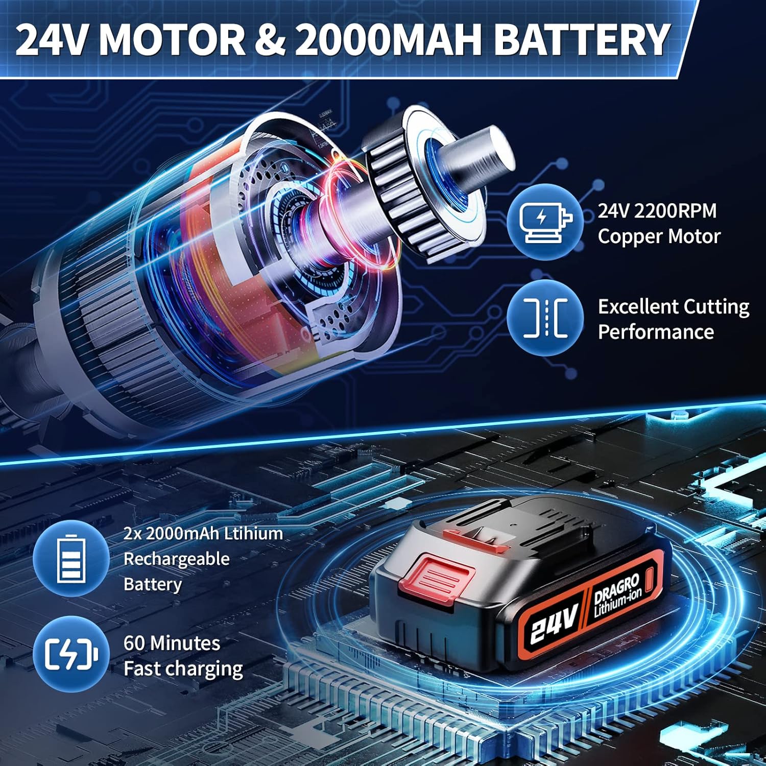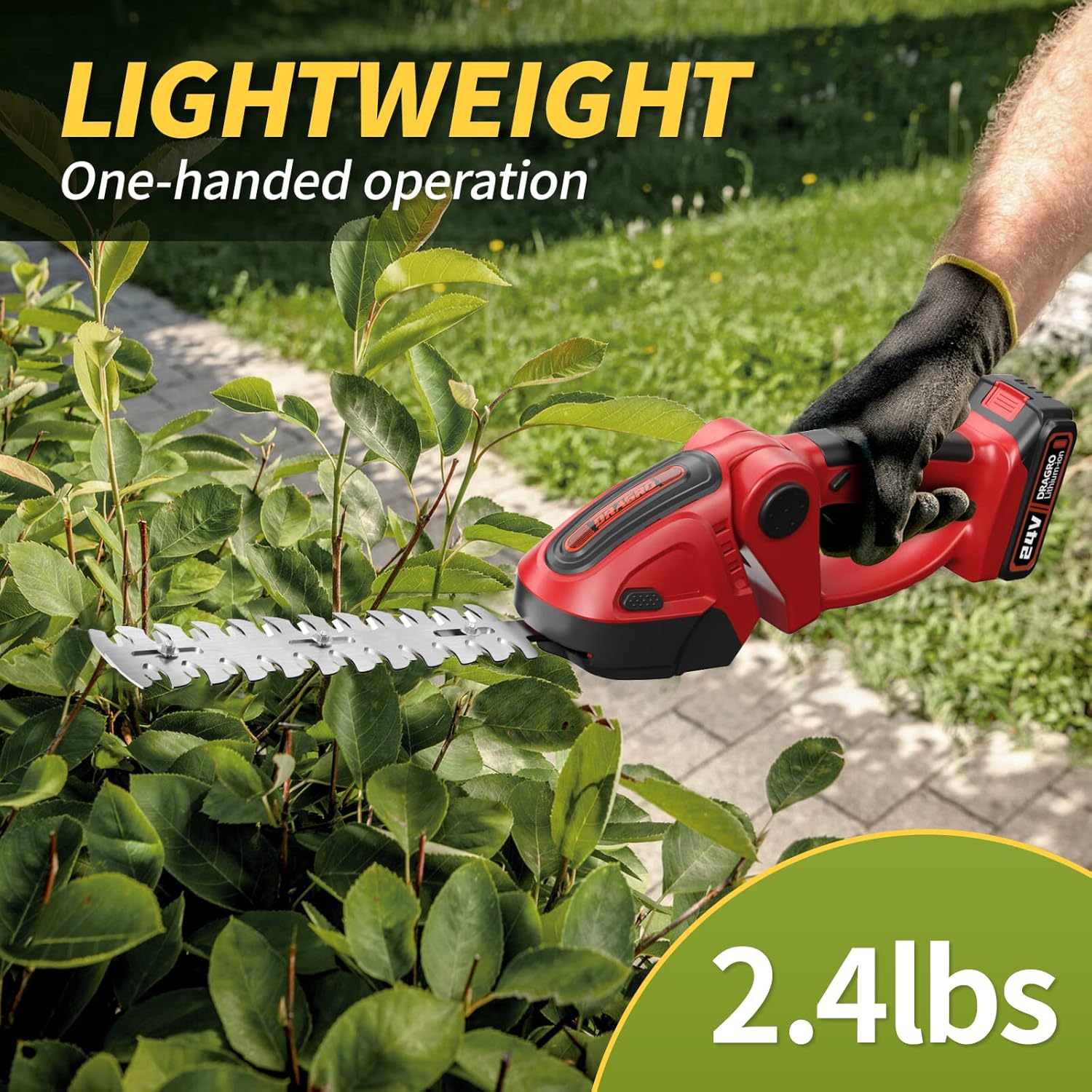 Dragro Cordless Grass Shears, 2 in 1 Electric Mini Hedge Trimmer Cordless, Handheld Grass Hedge Cutter Clippers, Battery Operated Weed Hedge Trimmer with 2Pcs 24V 2.0Ah Batteries and Charger Included