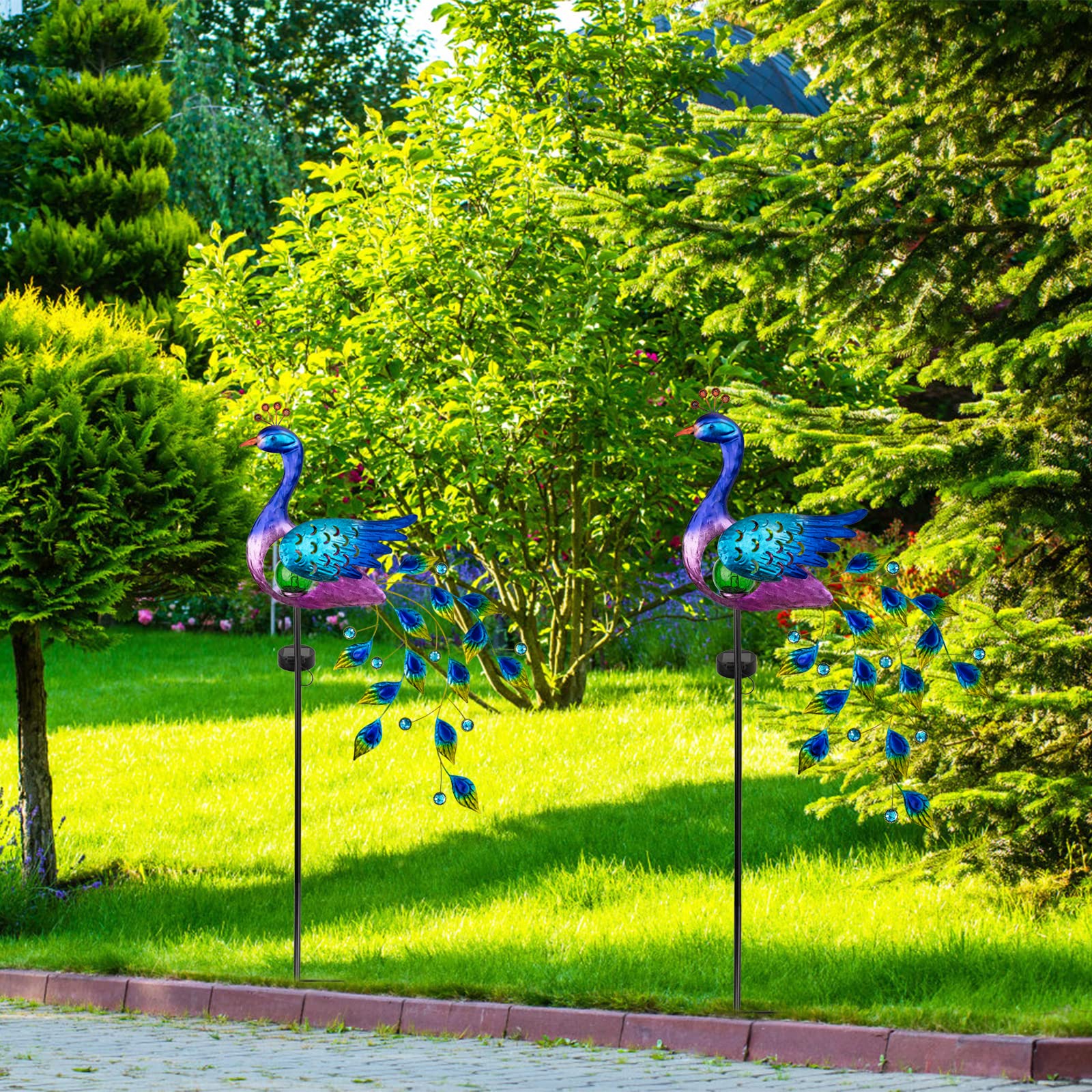 DREAMSOUL Peacock Solar Garden Lights Outdoor Decorative Stake, Waterproof Metal Peacock Garden Decor Solar Powered Landscape LED Path Lights Walkway Patio Yard Outside Decoration Lawn Ornament