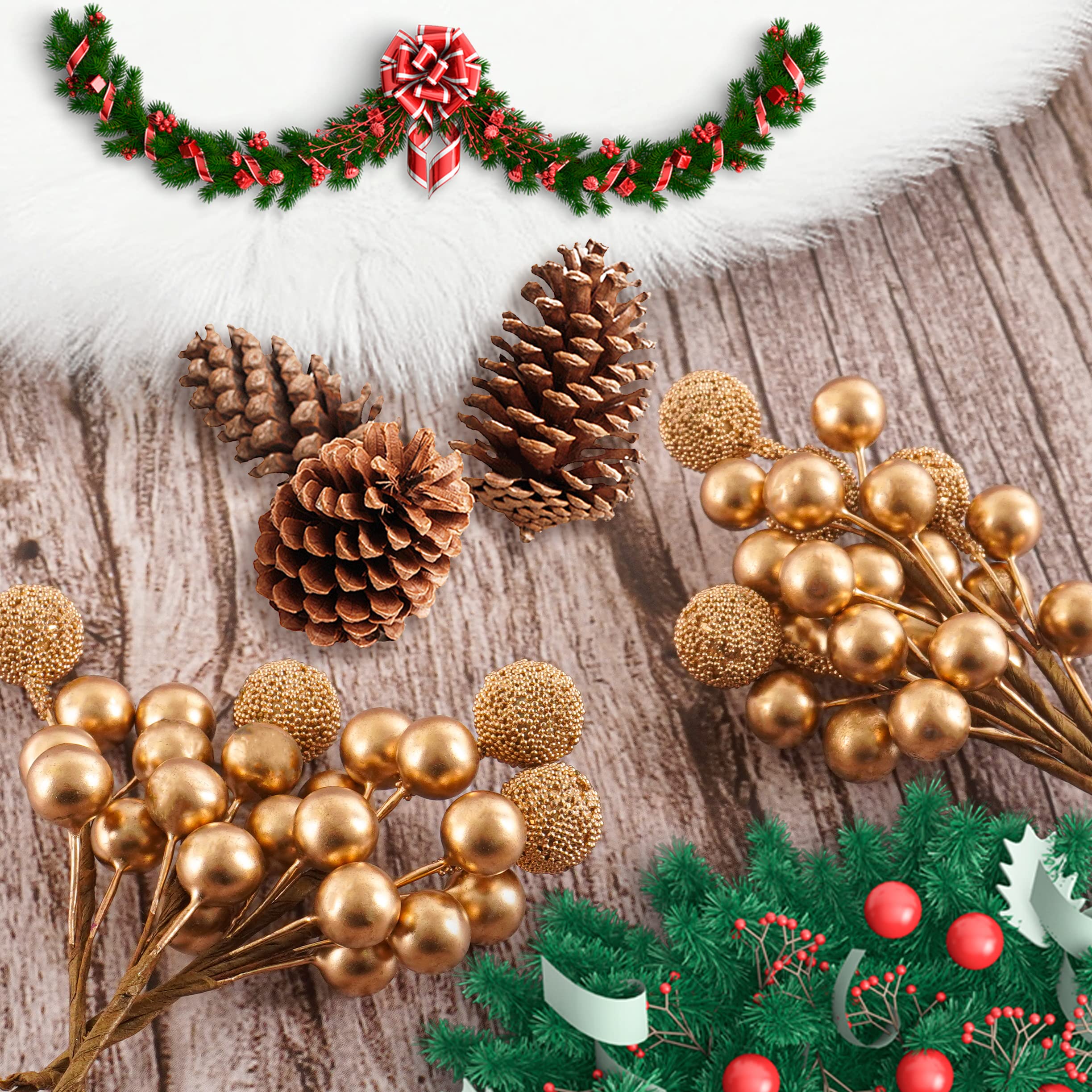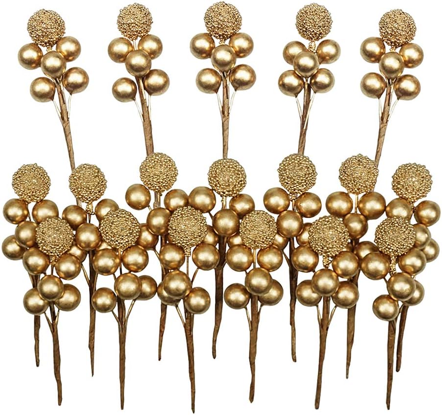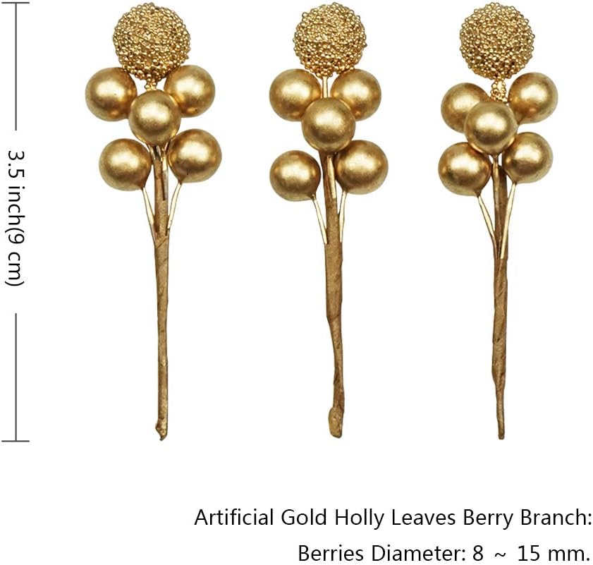 DRWATE Artificial Gold Holly Leaves Berry Picks Stems Fake Winter Christmas Berries Decor for DIY Garland and Holiday Wreath Ornaments, 16 Branch by Bilipala
