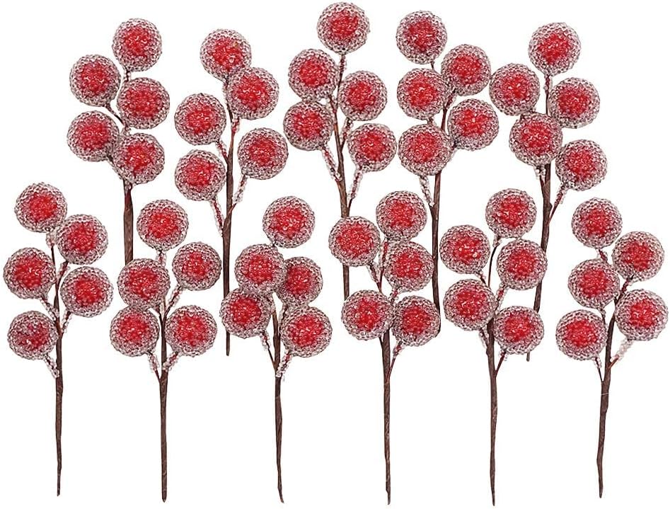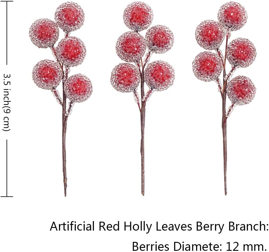 DRWATE Artificial Red Holly Leaves Berry Picks Stems Fake Winter Christmas Berries Decor for DIY Garland and Holiday Wreath Ornaments, 16 Branch by Bilipala