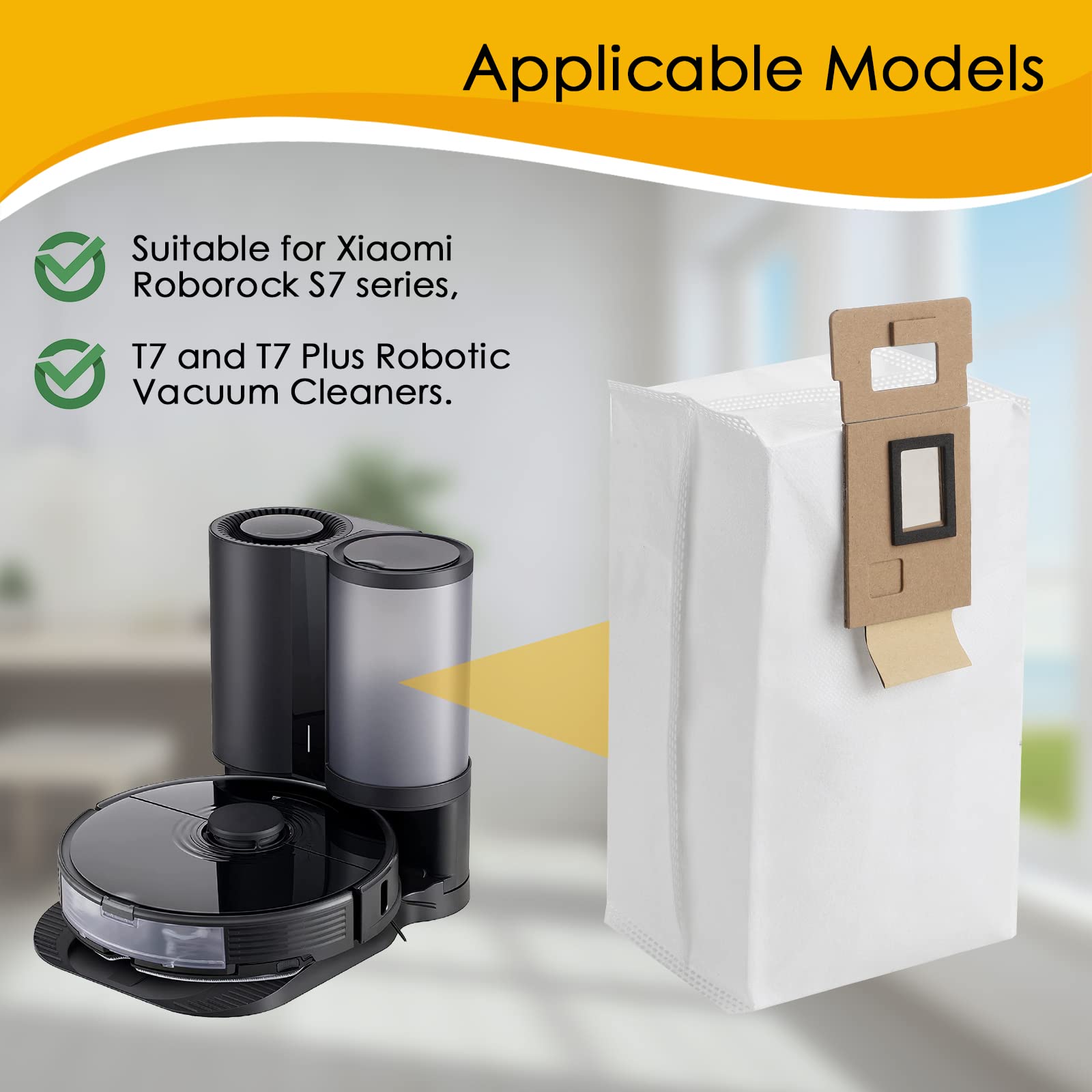 Dust Bag For Roborock S7 S7+ Vacuum Cleaner Autoempty Dock, 3L Large Capacity Cleaner Bag For Roborock S7 S7 Plus 7Pack