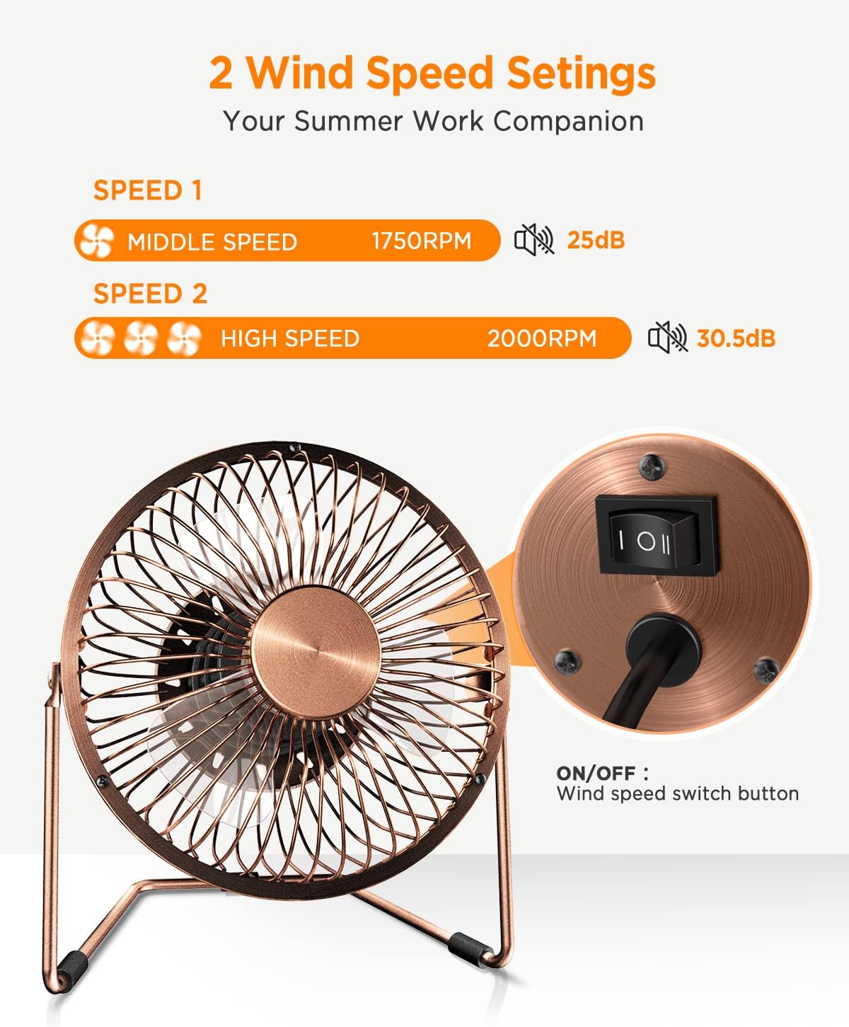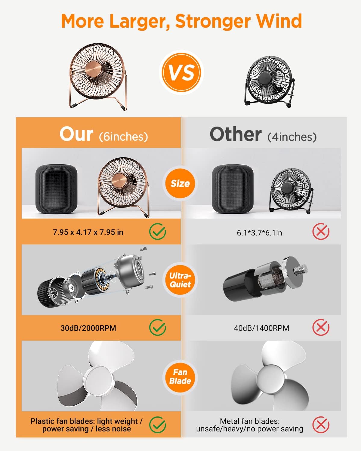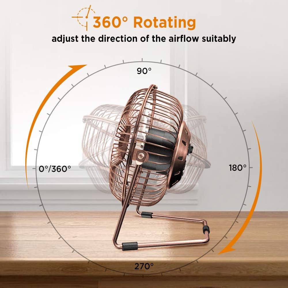 Easyacc 6 Inch Usb Desk Fan, 360°Rotation Small And Quiet,Powerful Portable Strong Airflow,Mini Metal Personal Cooling Fan