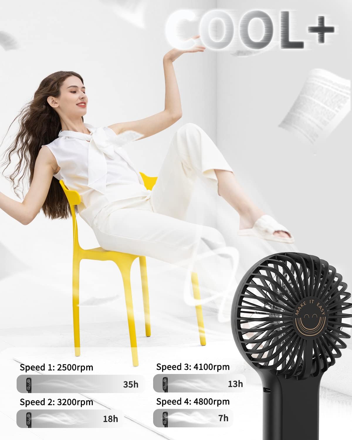 Easyacc Handheld Fan, 5000 Battery Portable Fan 735H Working Time] Usb Rechargeable, 4 Speed Cooling Personal Fan, Mini Hand Held