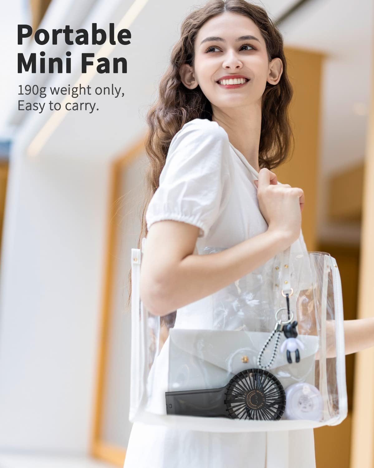 • 【Portable Fan For Travel】 This cute mini fan portable is only 185x98x39mm / 7.28x3.86x1.53inch, 192g / 6.77oz, you can put it in your pocket or bag and hang it around your wrist with a lanyard when not in use No matter where you go, it's an ideal partner in such hot summer to keep you cool when travelling, commute, office, shopping, picnic, waiting in line or doing sports.
