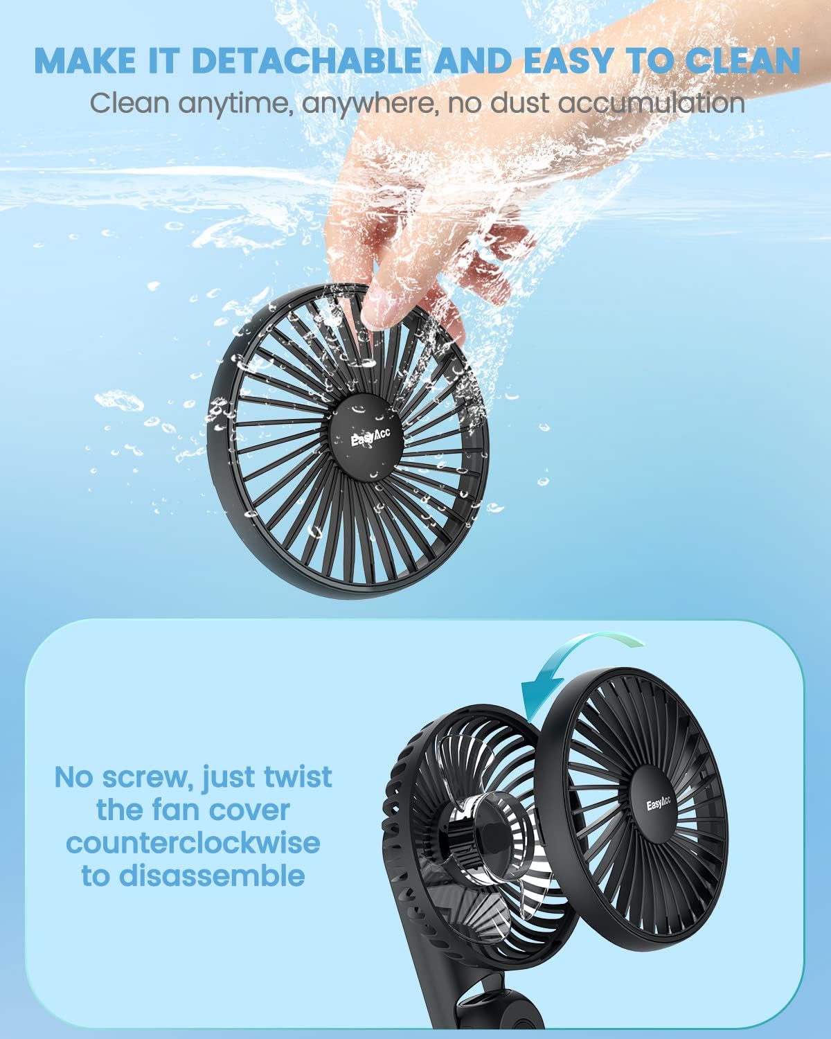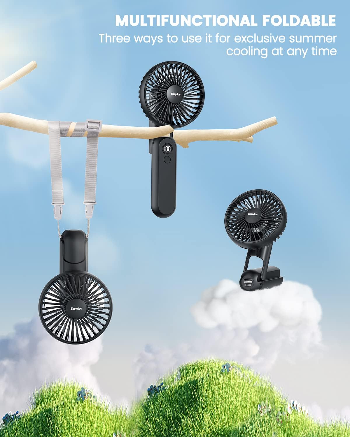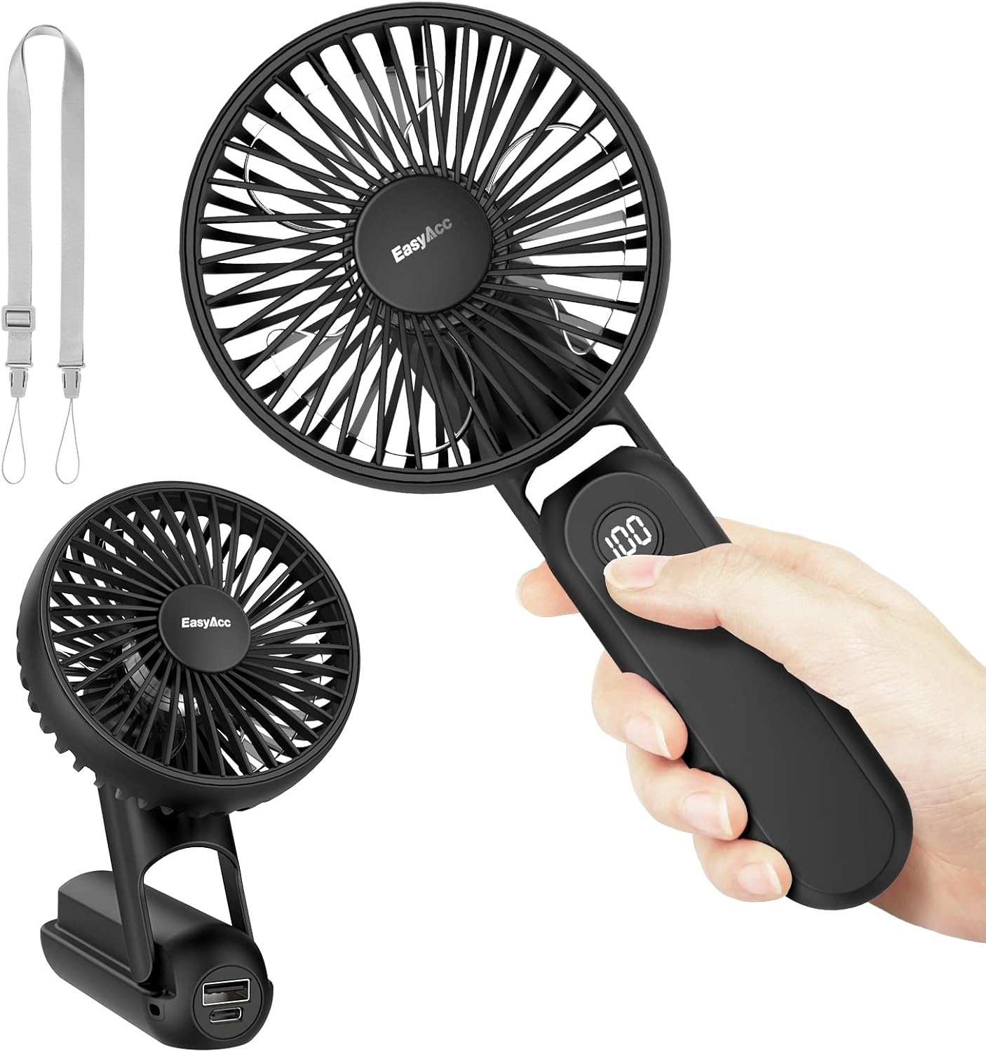 Easyacc Portable Fan For Travel,Rechargeable Handheld Fan, 5 Speed Ultra Quiet 18H Max Cooling Time] With Backup Power Digital