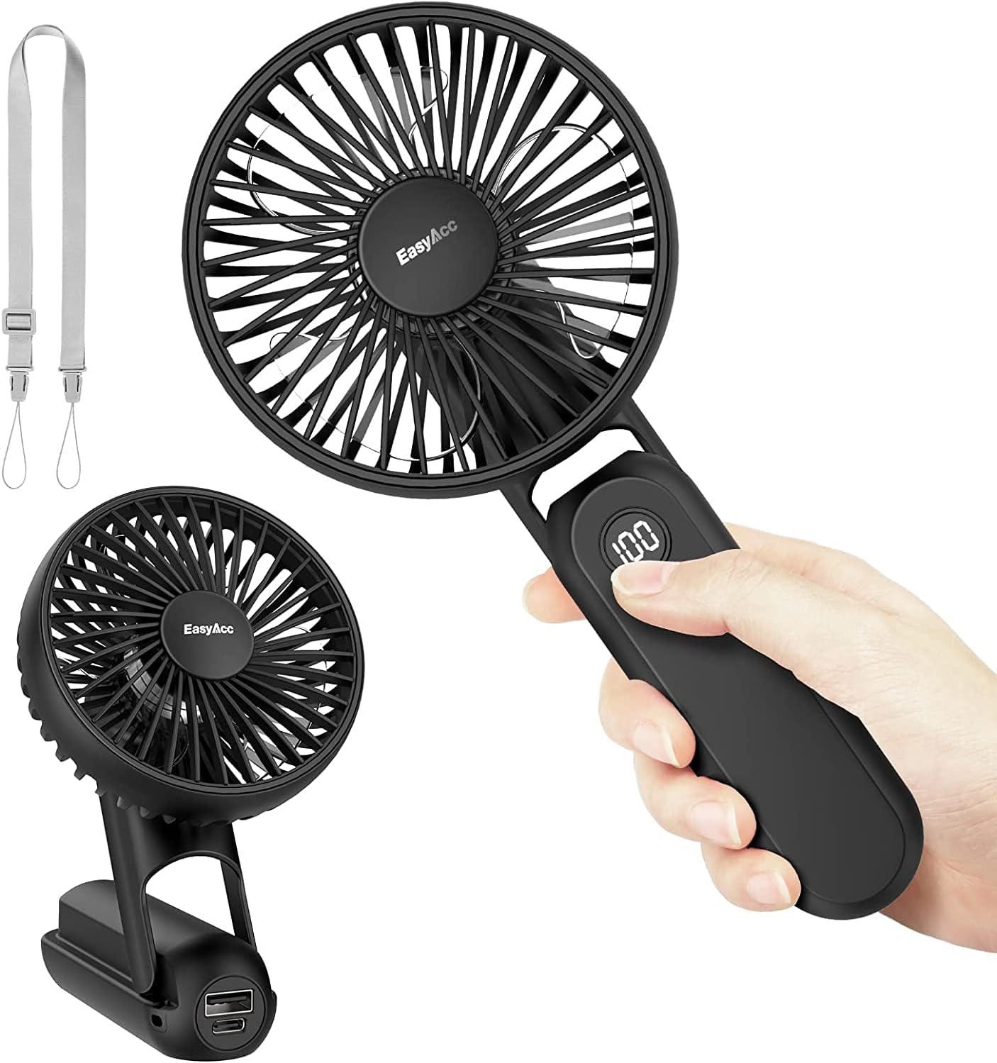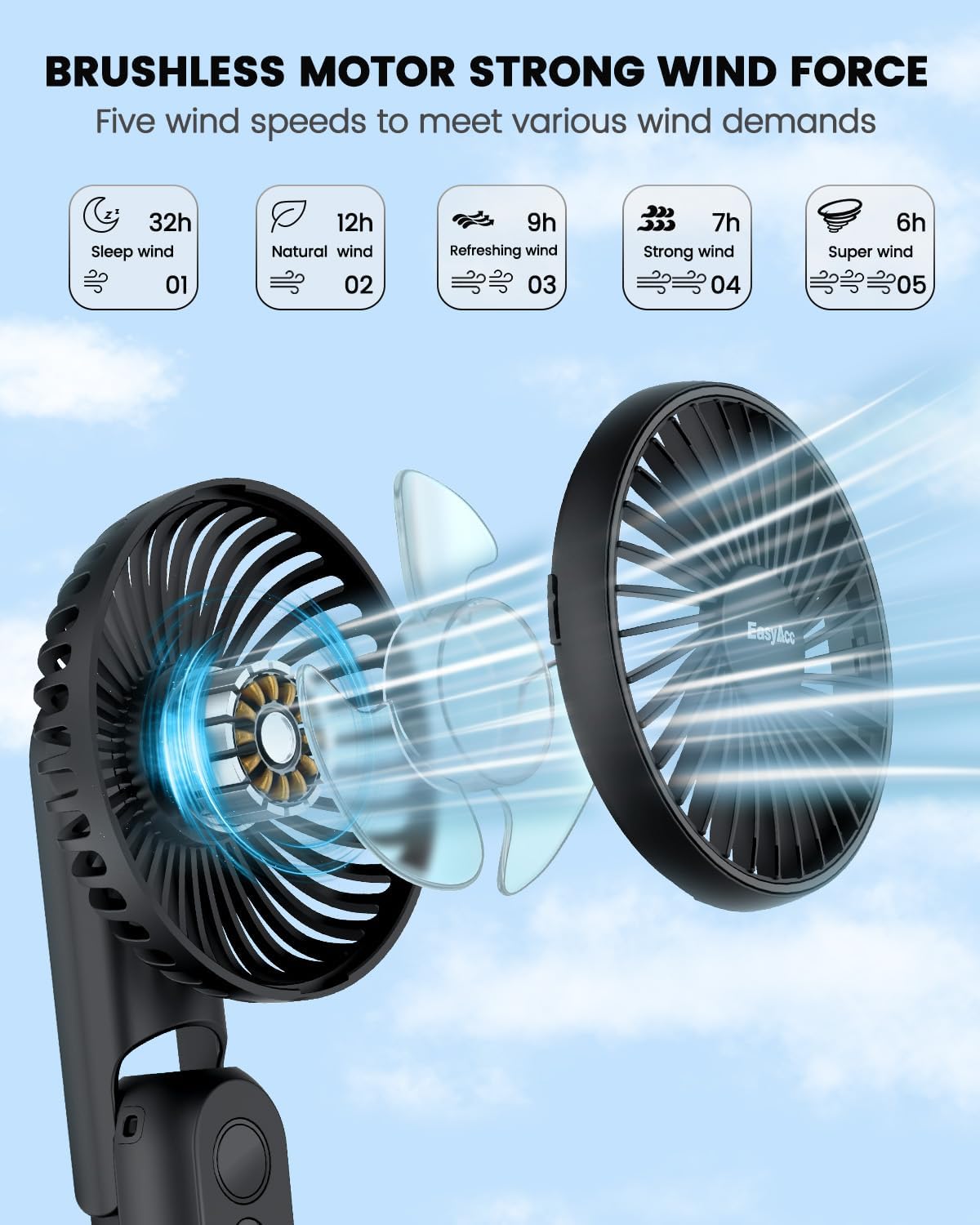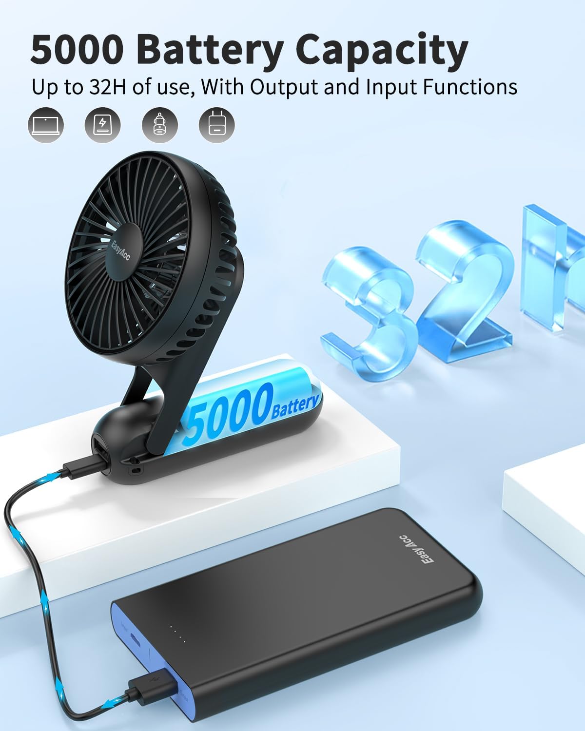 Easyacc Portable Handheld Fan, 5000Mah 32H Rechargable Personal Fan, 5 Speed Powerful Ultra Quiet Usb C Small Desk Fan, 180° Fold