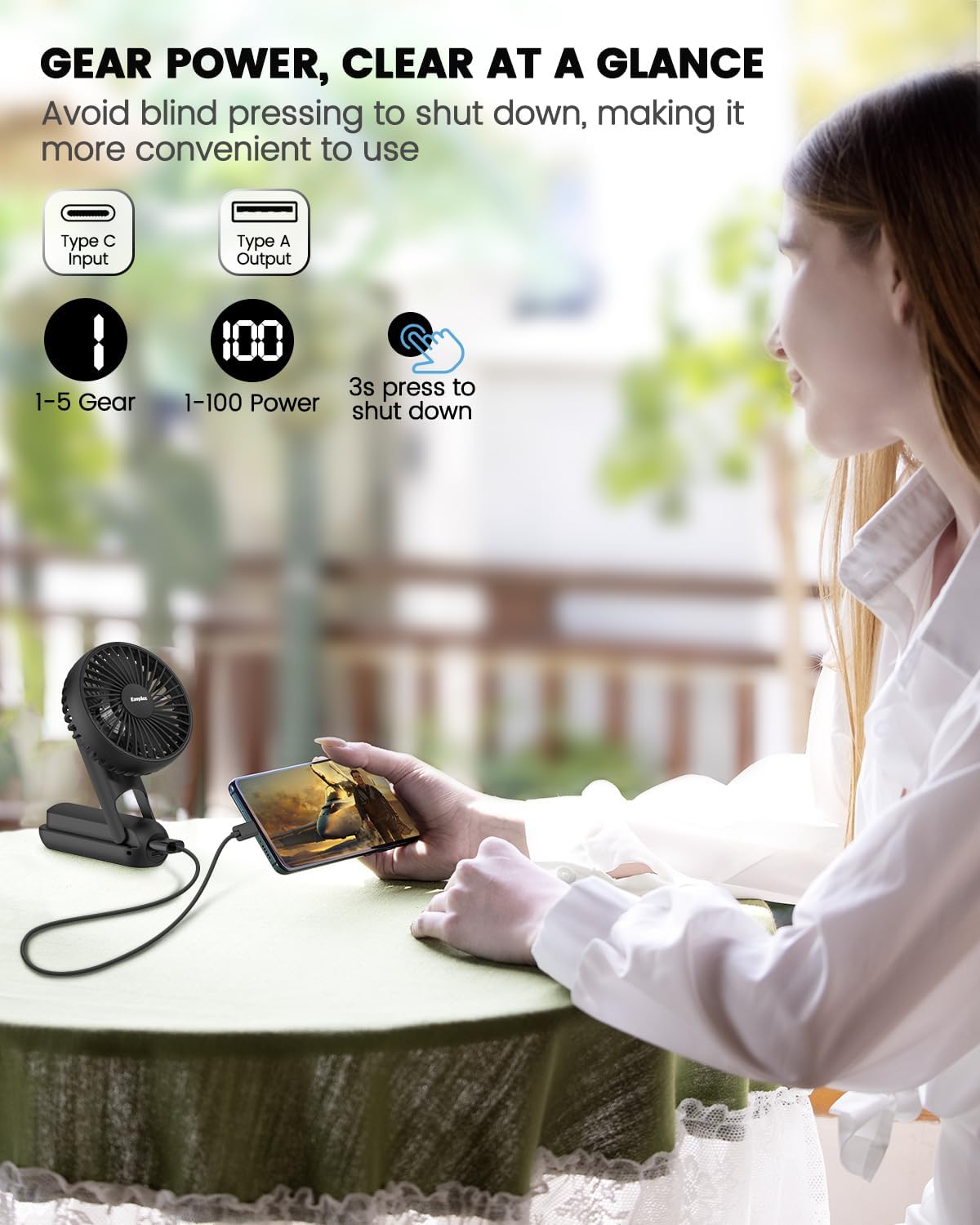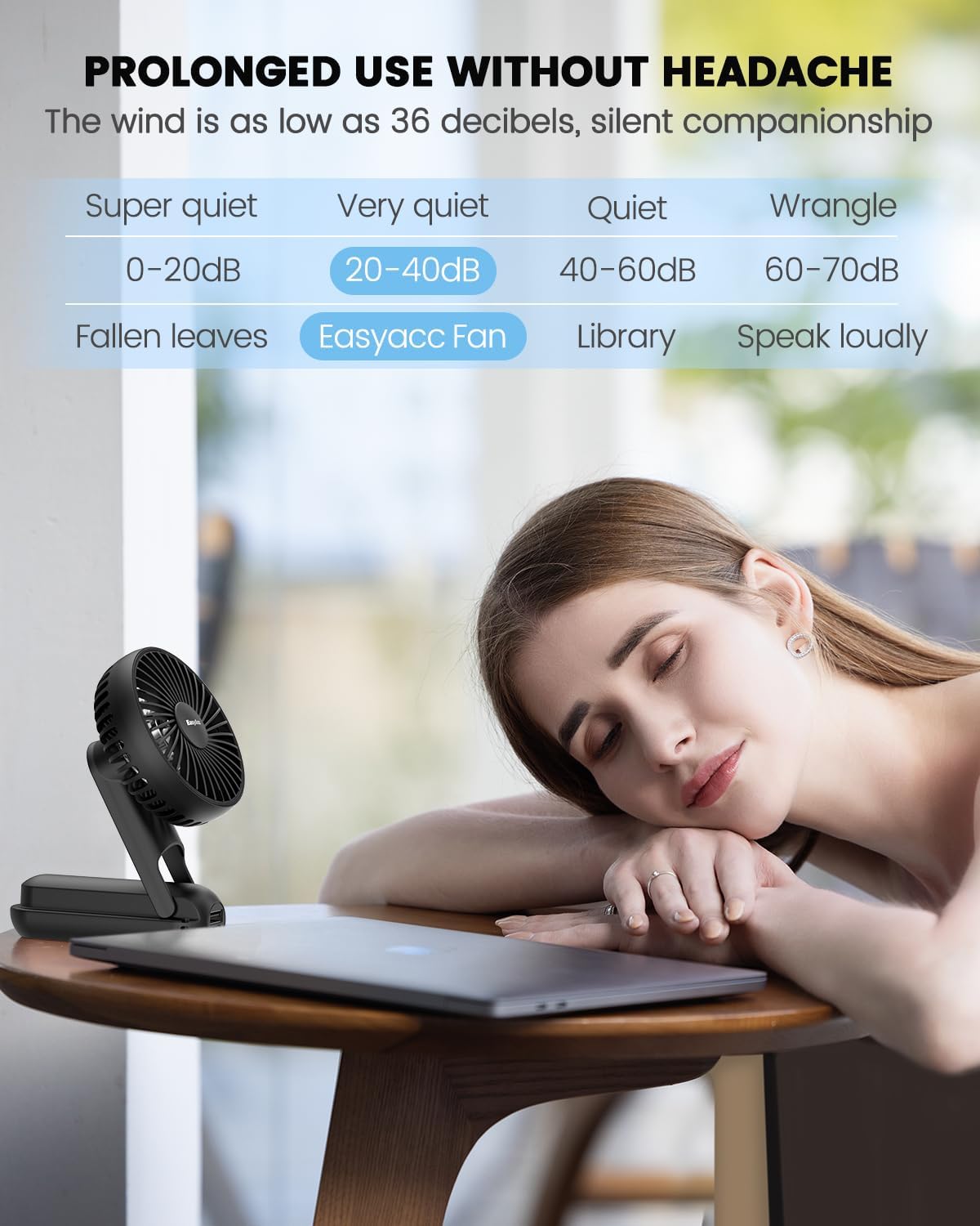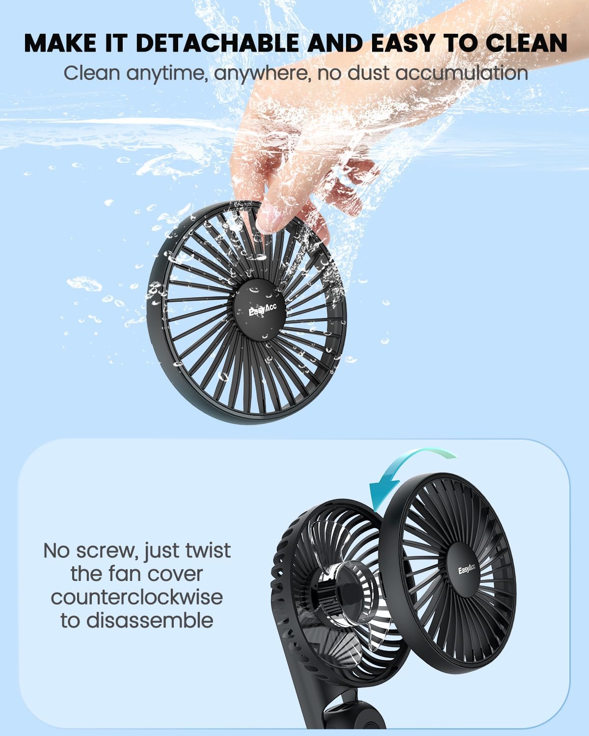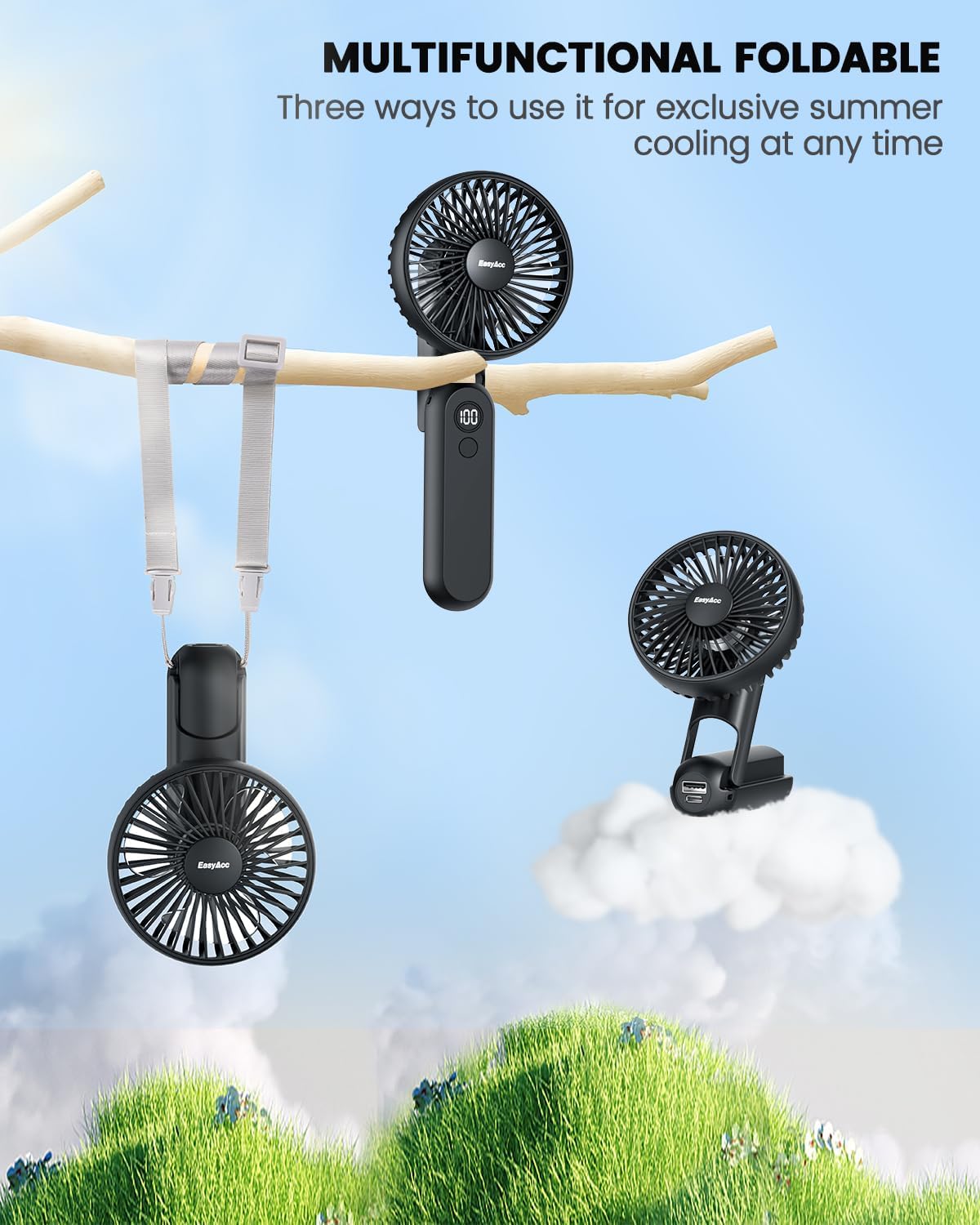 Easyacc Portable Handheld Fan, 5000Mah 32H Rechargable Personal Fan, 5 Speed Powerful Ultra Quiet Usb C Small Desk Fan, 180° Fold