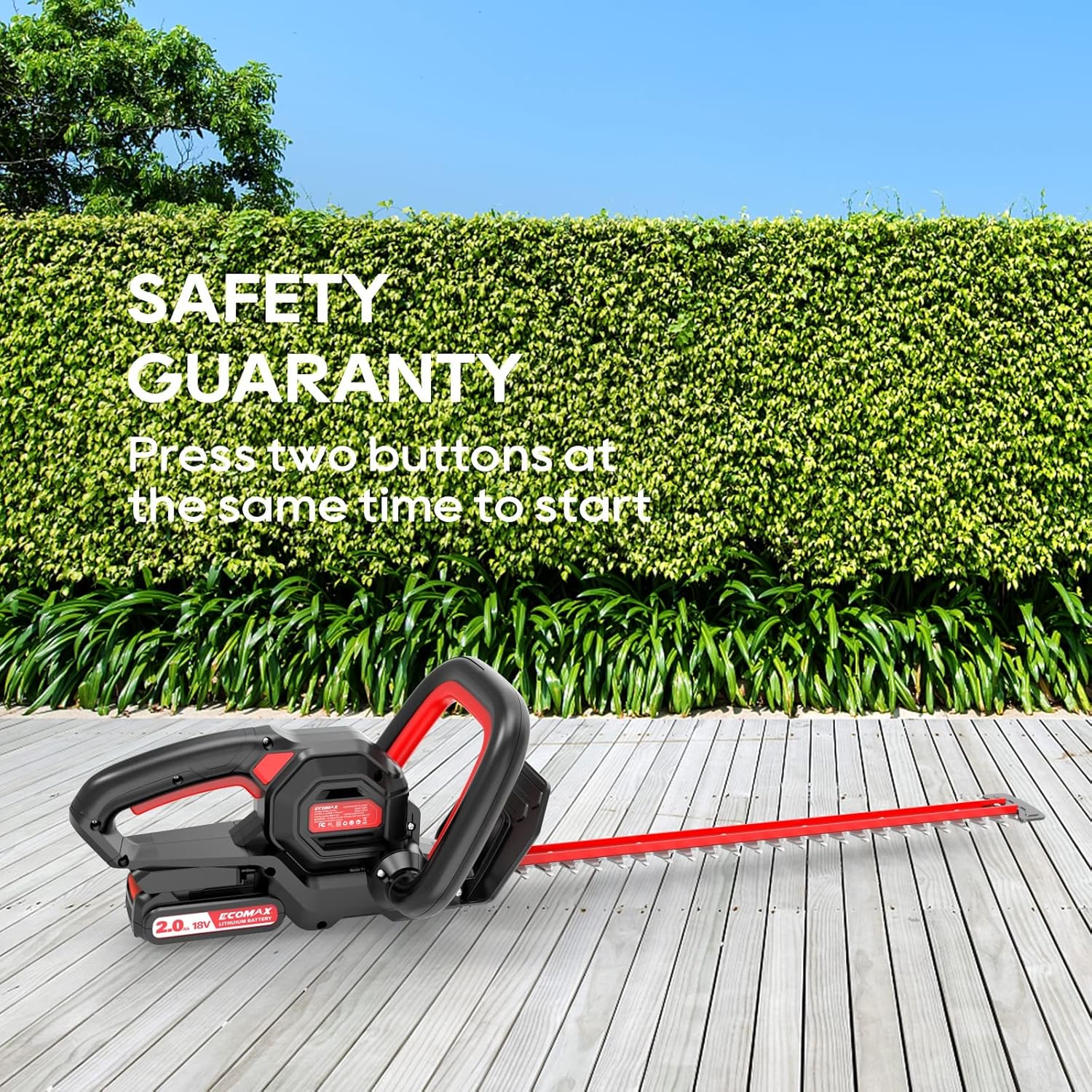 ECOMAX 18V 22-Inch Cordless Hedge Trimmer, Ideal for Pruning Branches in Your Backyard, Garden, Hedge Trimmer with 2.0AH Battery & Charger, ELG06