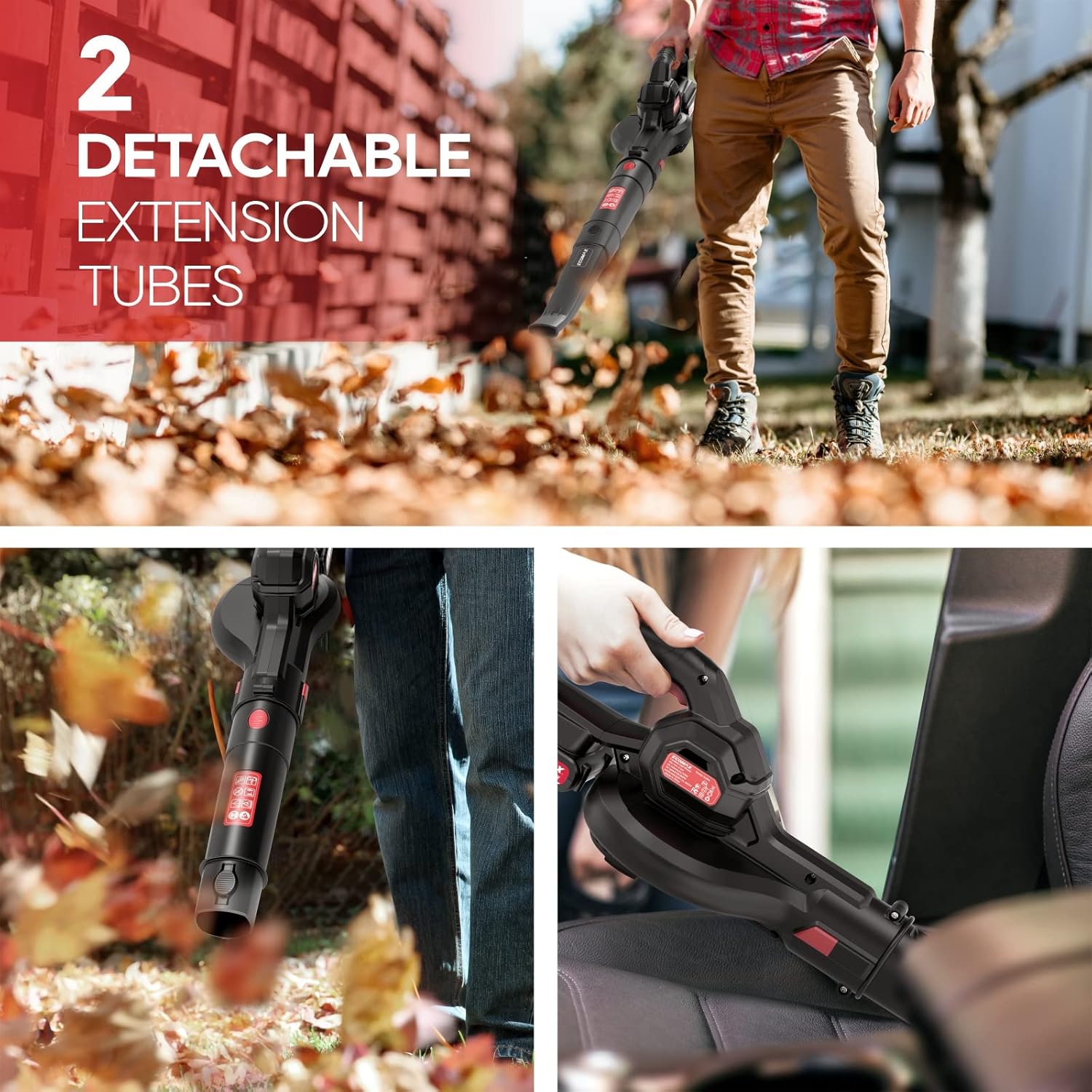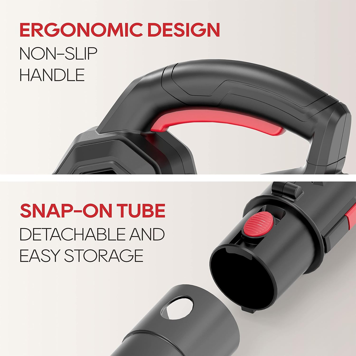 Ecomax 18V Cordless Leaf Blower, Powerful Blower Battery Powered for Lawn Care & Snow Blowing & Yard Cleaning, 2Ah Battery and Charger Included, ELG04, Black & Red
