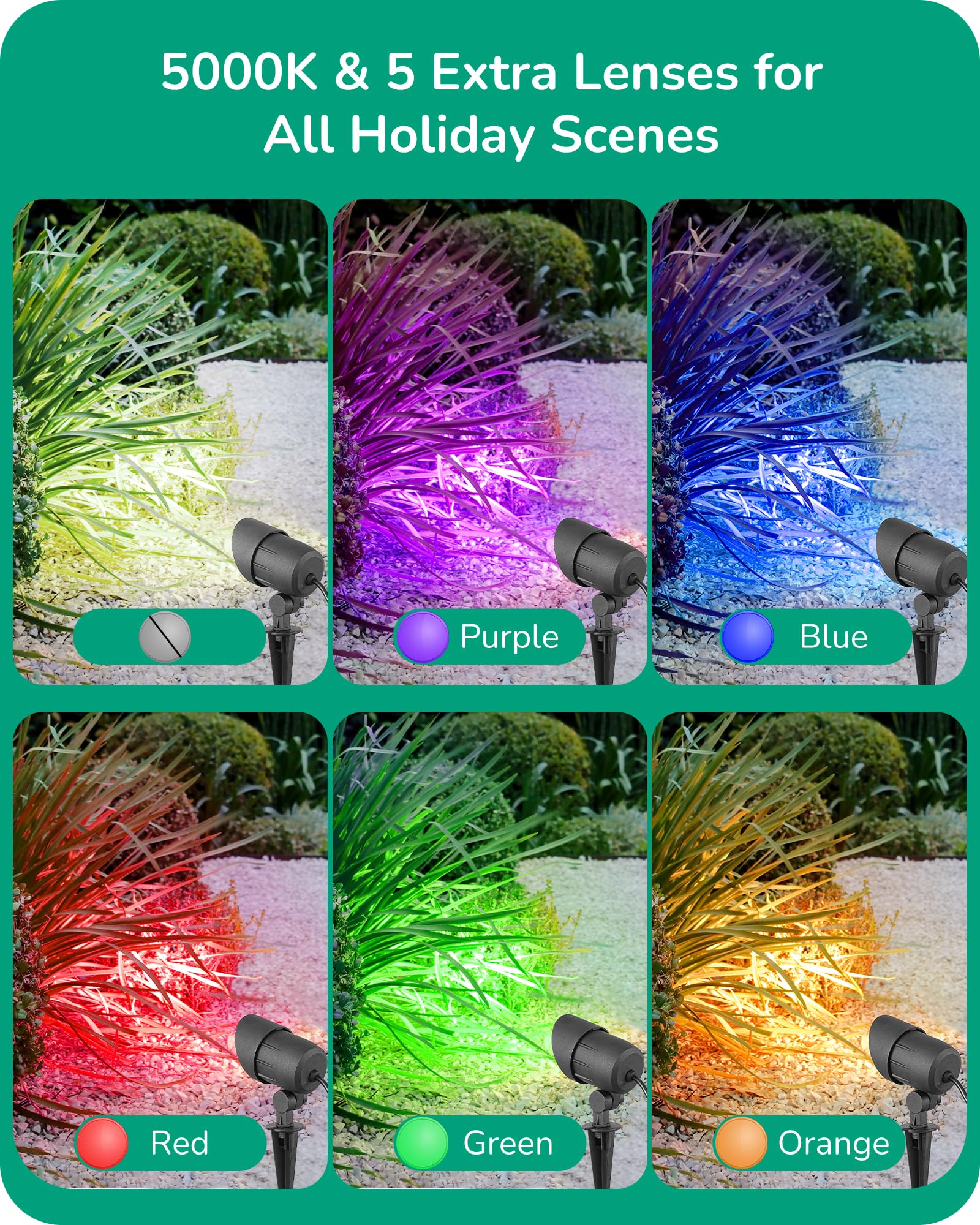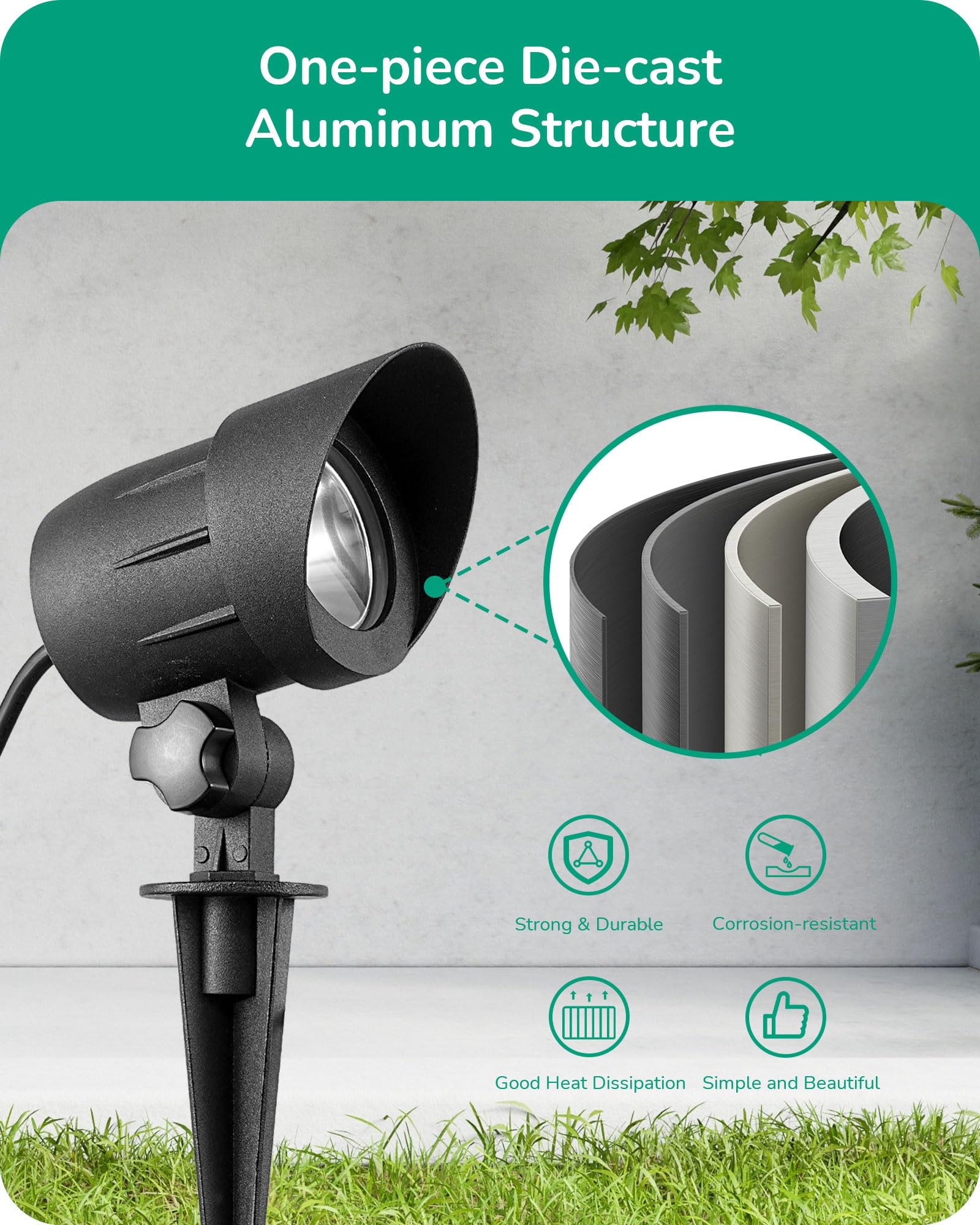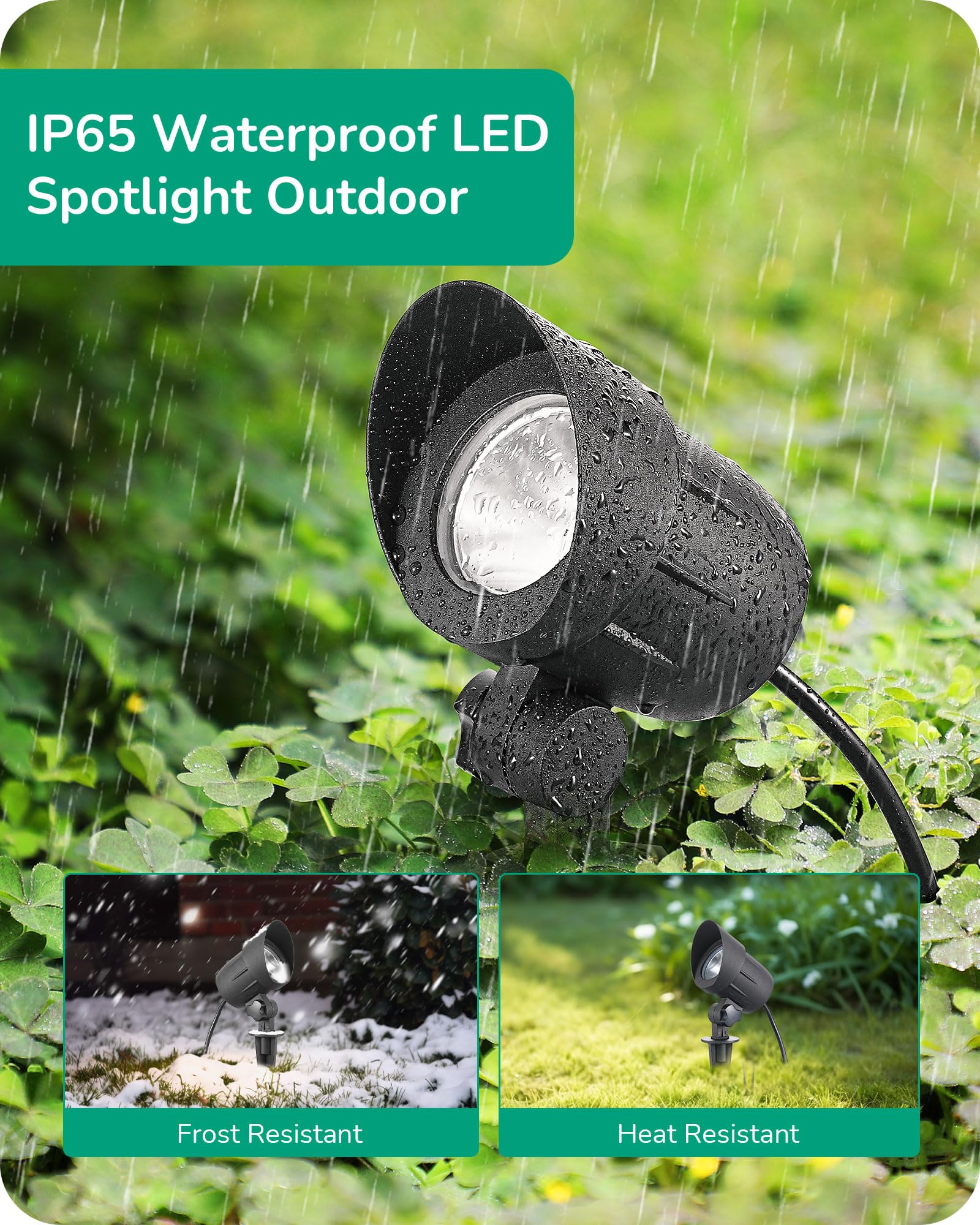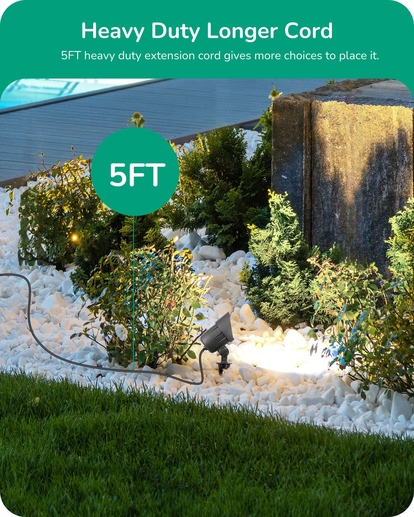 EDISHINE Christmas 120V Spotlight Outdoor, Plug in Outdoor LED Spot Light with 5 Lenses, 10W 900LM 5000K, One-Piece Die-cast Aluminum, IP65 Landscape Lighting for Holiday Yard Flag Tree