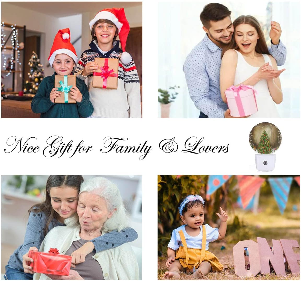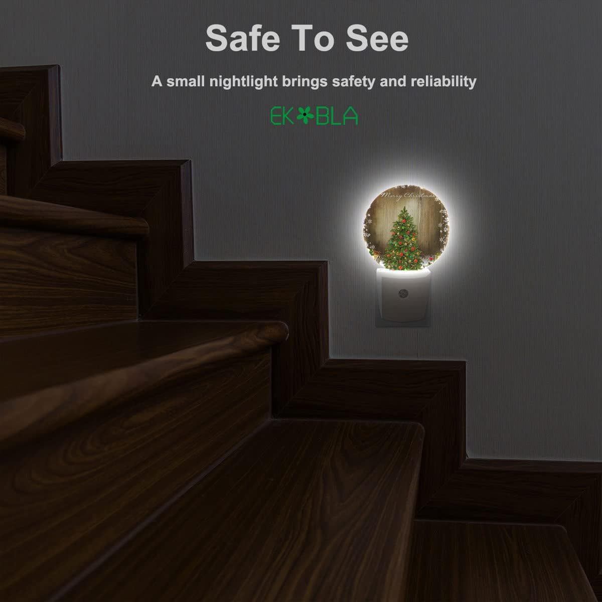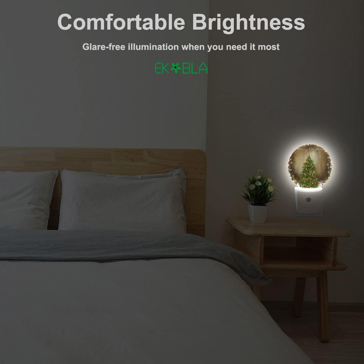 EKOBLA Winter Green Christmas Tree Night Lights Plug into Wall Holiday Presents Boxes Snowflakes Night Lamp Auto Sensor LED Dusk to Dawn Light for Boys Girls Men Women