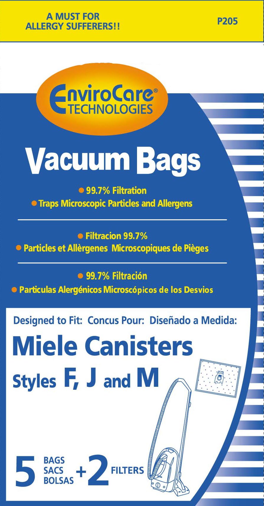 Envirocare Allergen Vacuum Cleaner Dust Bags Made To Fit Miele Canisters Style F J M 5 Pack With 2 Filters