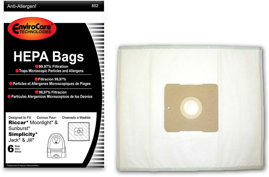 Envirocare Hepa Filtration Vacuum Cleaner Dust Bags Made To Fit Riccar Moonlight And Sunburst. Simplicity Jack And Jill Canisters 6 Pack