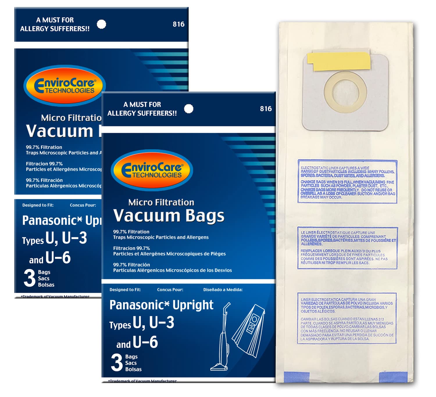 Envirocare Micro Filtration Vacuum Cleaner Dust Bags Designed To Fit Panasonic Types U, U3, U6 6 Pack