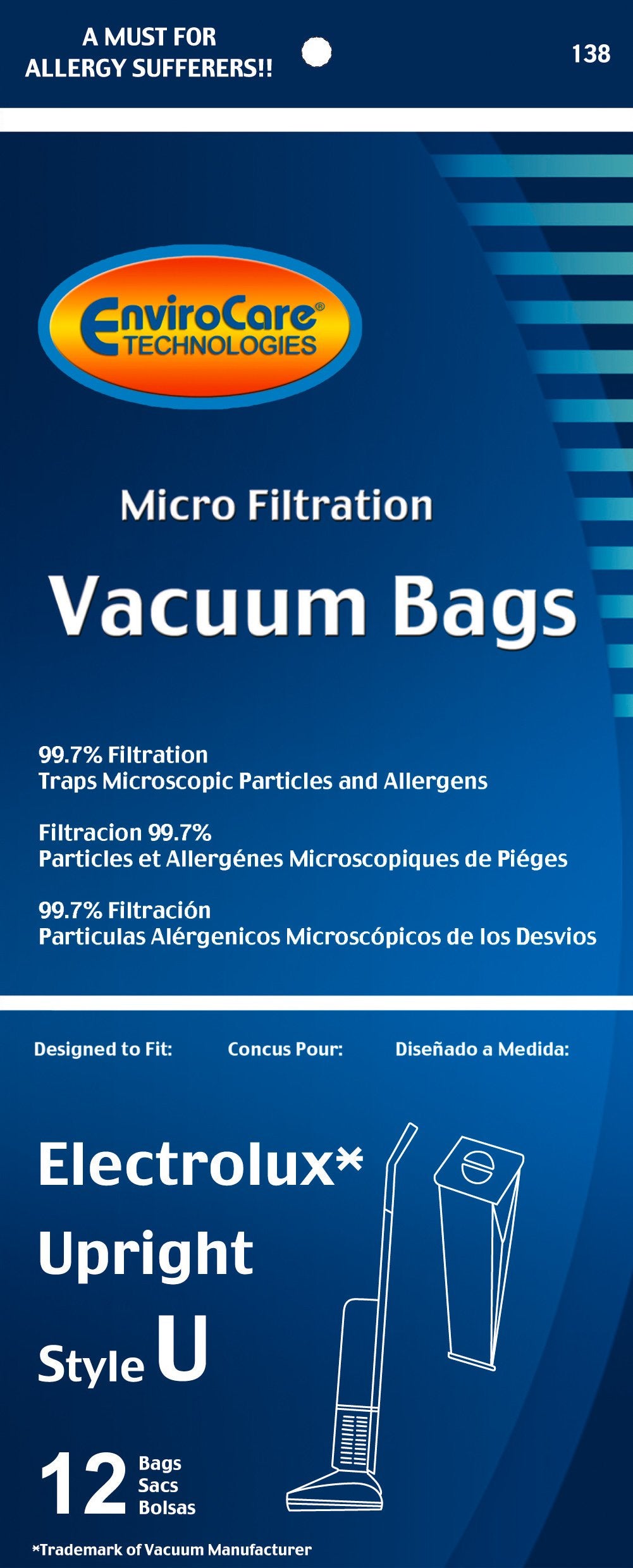 Envirocare Micro Filtration Vacuum Cleaner Dust Bags Made To Fit Electrolux Upright Style U And Proteam Prolux, Procare & Proforce Uprights 12 Pack