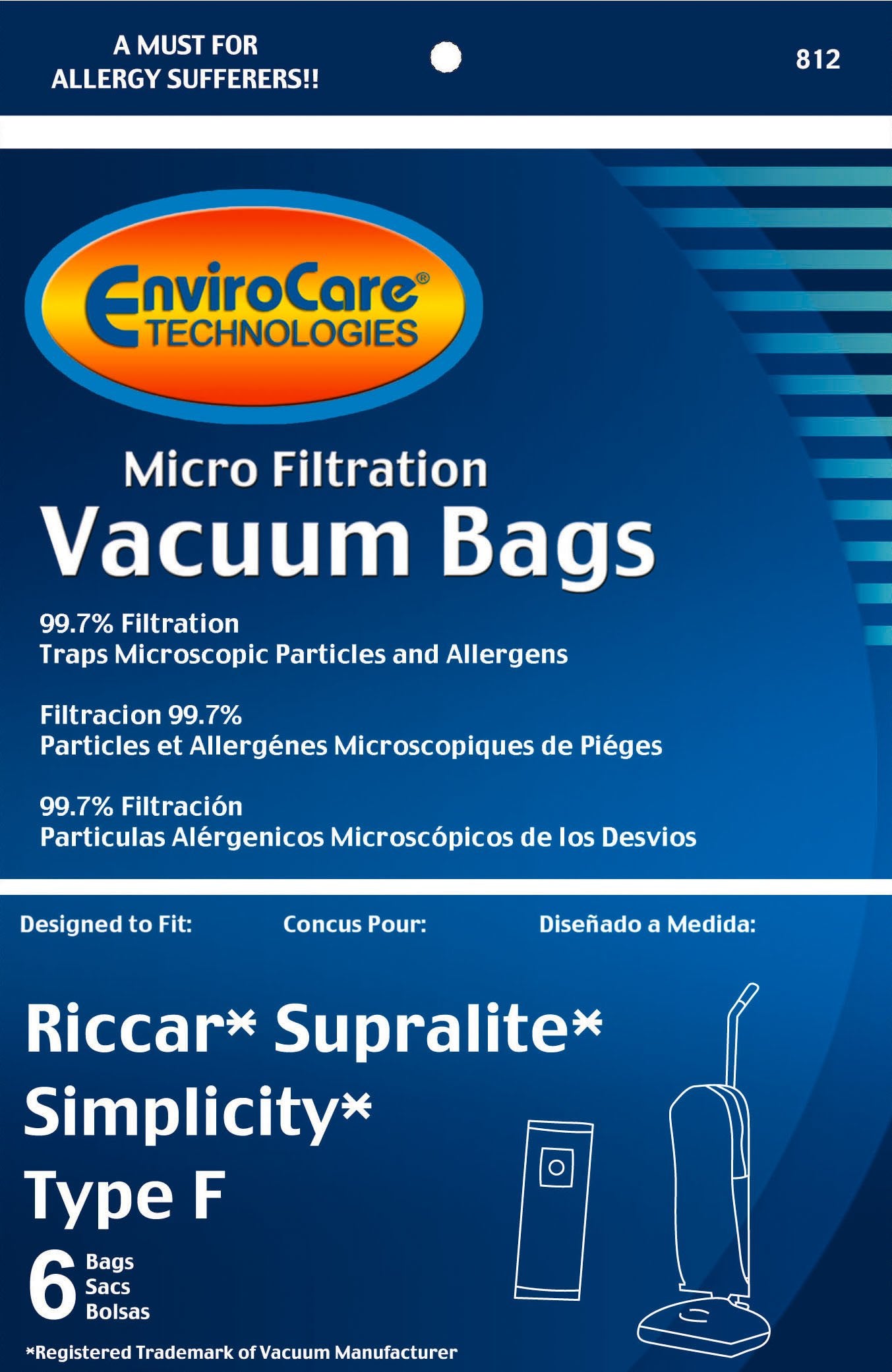Envirocare Micro Filtration Vacuum Cleaner Dust Bags Made To Fit Riccar Supralite And Simplicity Type F Uprights 6 Pack