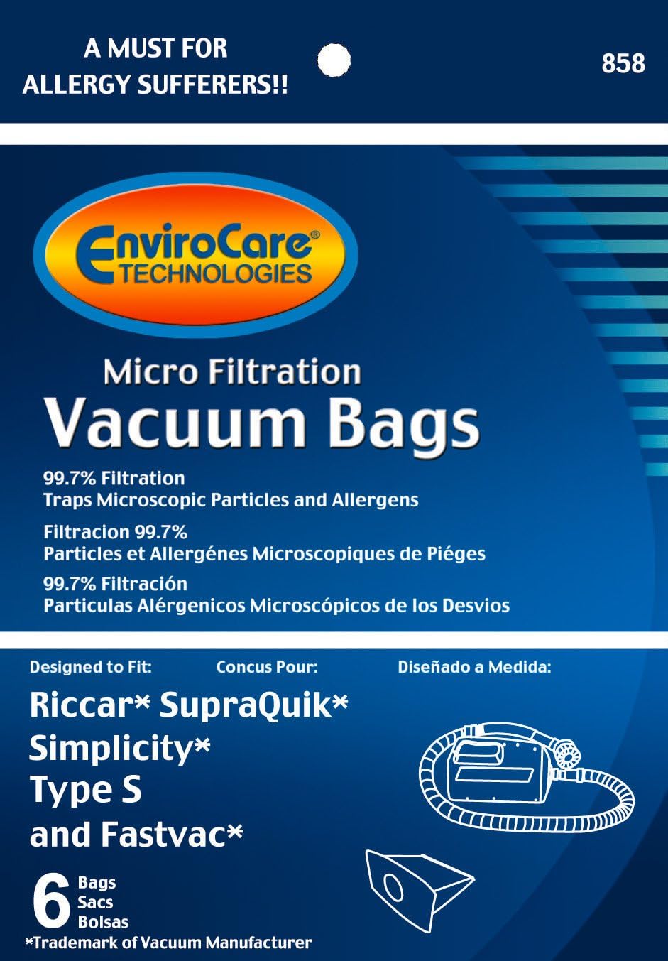 Envirocare Micro Filtration Vacuum Cleaner Dust Bags Made To Fit Riccar Supraquik And Simplicity Type S And Fastvac 6 Pack