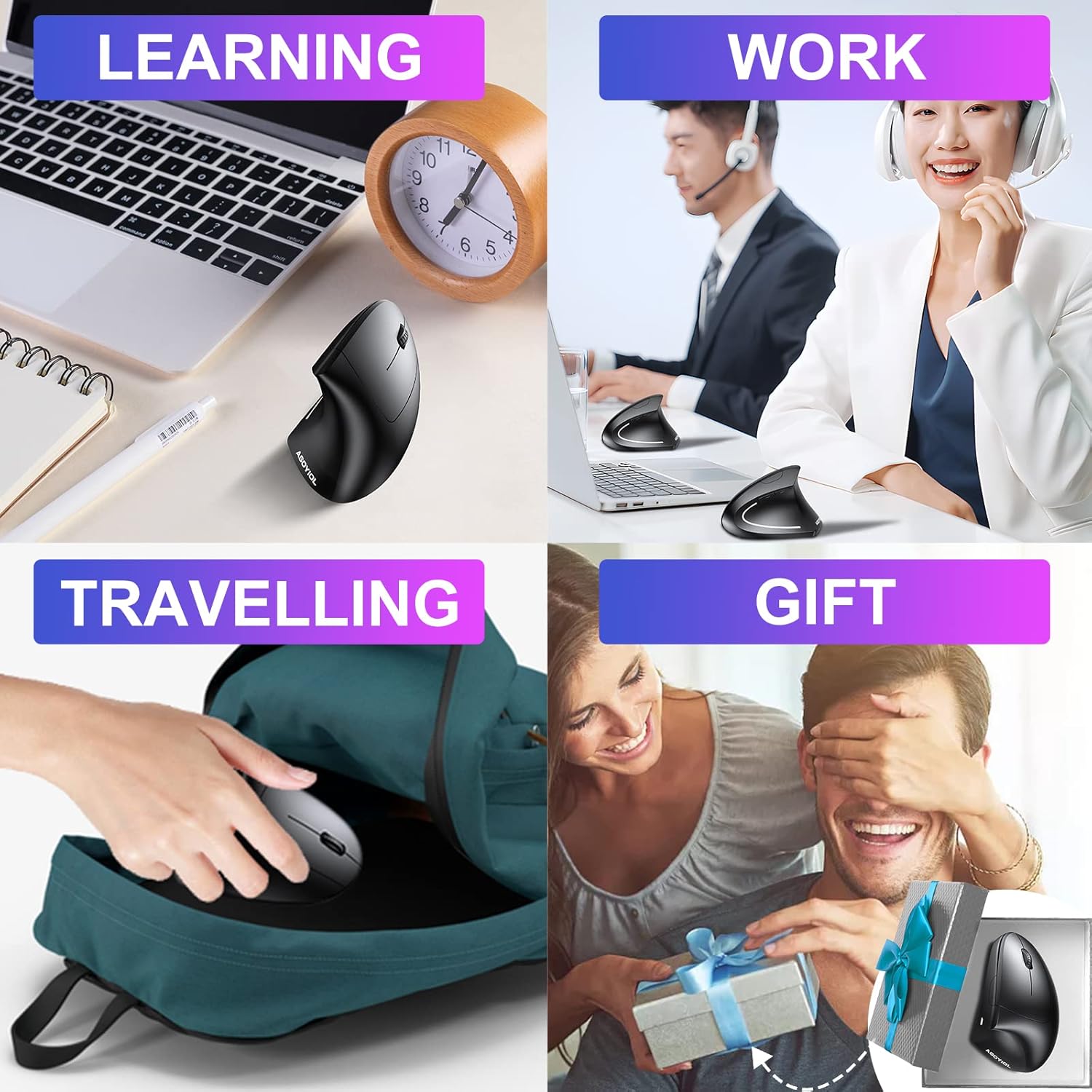 Ergonomic Mouse Wireless,Ergo Mouse Vertical Mouse 6 Buttons 3 Adjustable DPI 1000/1200/1600 Levels,Sideways Mouse Right Handed for PC Laptop(Battery Black