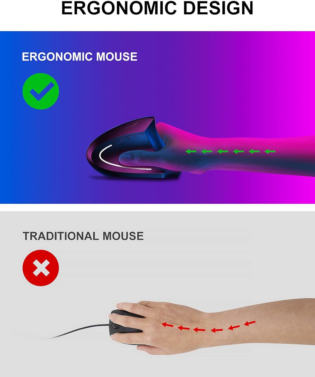 Ergonomic Mouse Wireless,Rechargeable Vertical Mouse with USB Receiver,6 Buttons 800/1200/1600 Computer Mouse for Laptop PC(Right Hand,Black)
