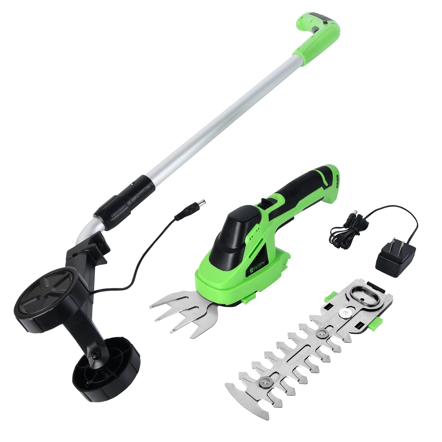 Evcitn Cordless Hedge Trimmer Electric Hand Held Grass Shear Shrubbery Clipper 7.2V Electric Grass Cutter with Rechargeable Battery and Charger Included for Garden and Lawn - Green(with Pole)