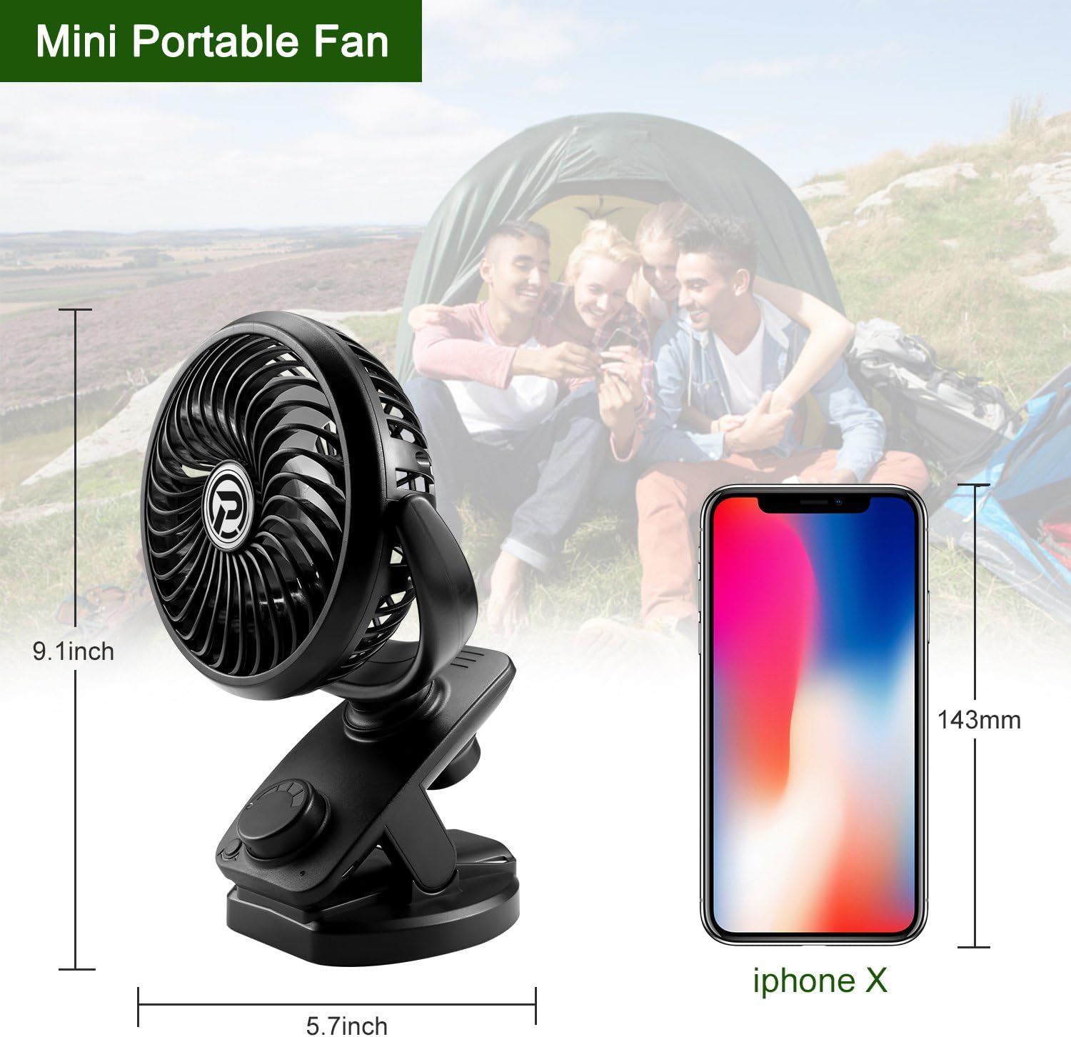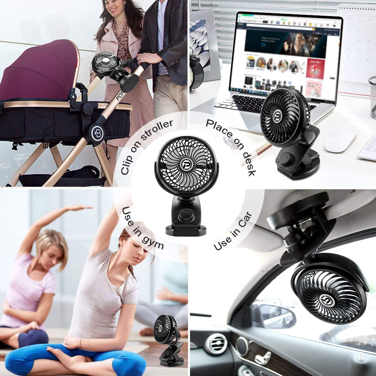 F170 Clip On Fan Auto Rotation Personal Fan 5000 Mah Battery Operated Fan, Usb Desk Fan Stepless Speeds Control, Powerful Airflow