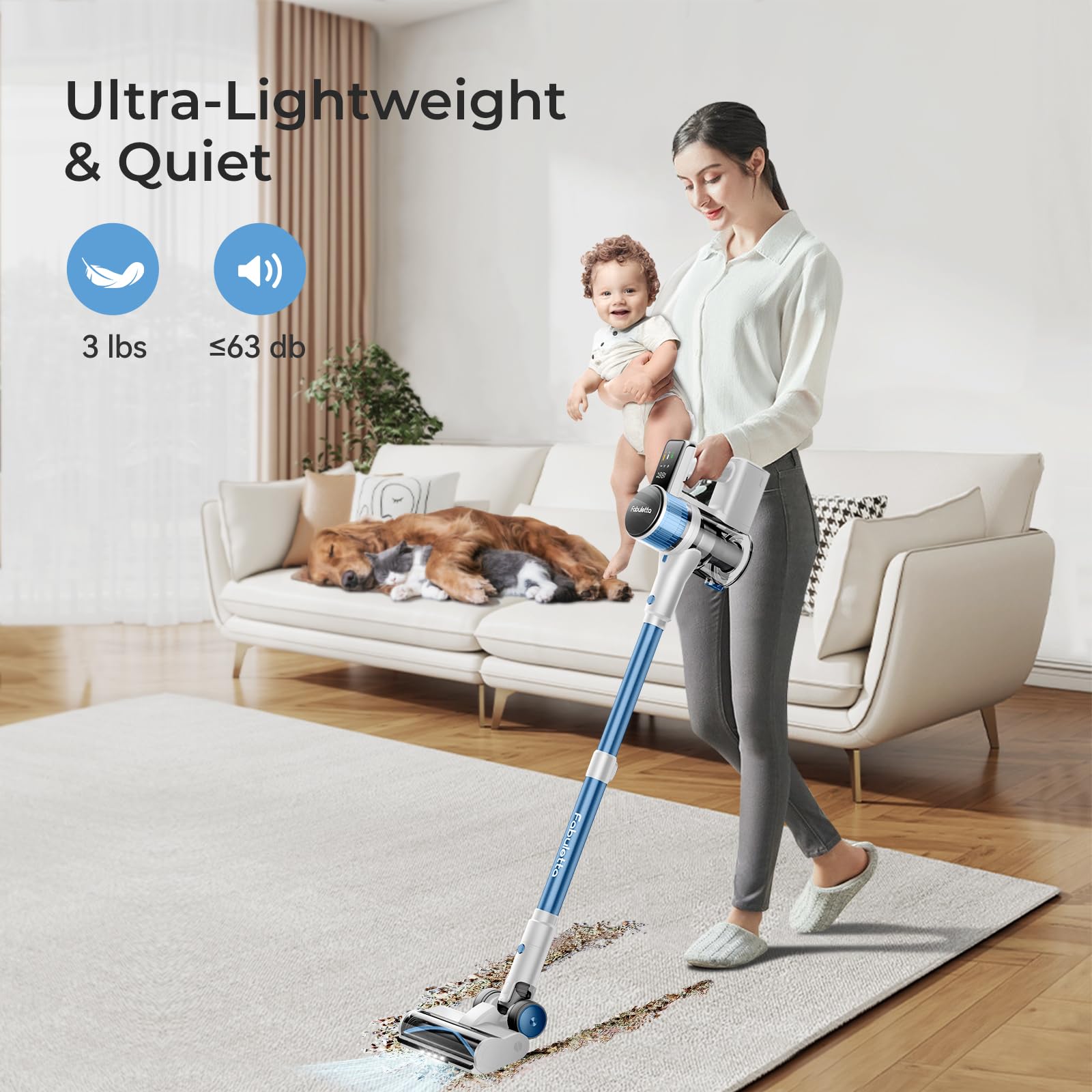 Fabuletta 35Kpa Cordless Vacuum Cleaner: 450W Stick Vacuum Cleaner With Brushless Motor Headlights, 55 Mins Runtime, Edge Cleaning, Wireless Household Vacuum Cleaner For Pet Haircarpethard Floor