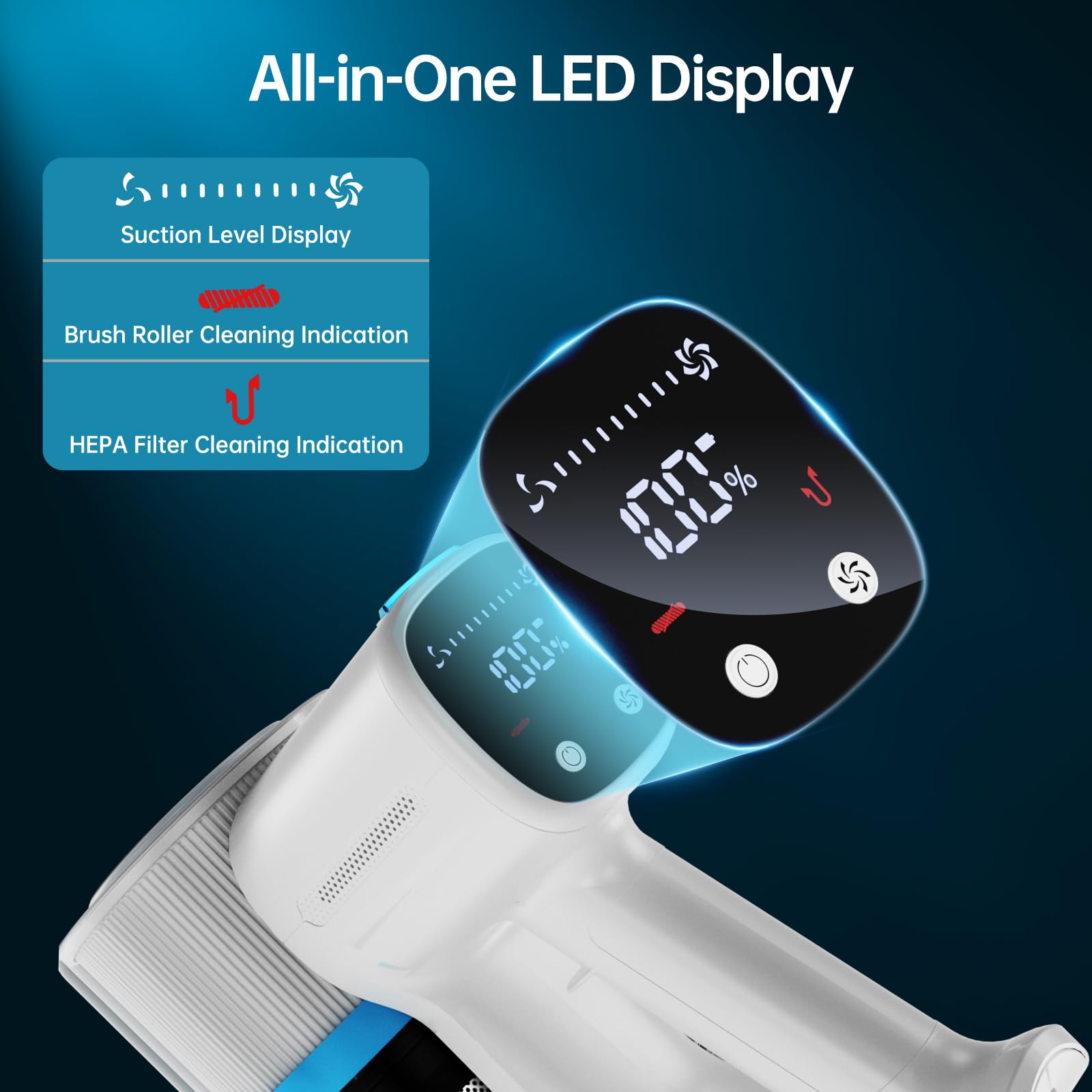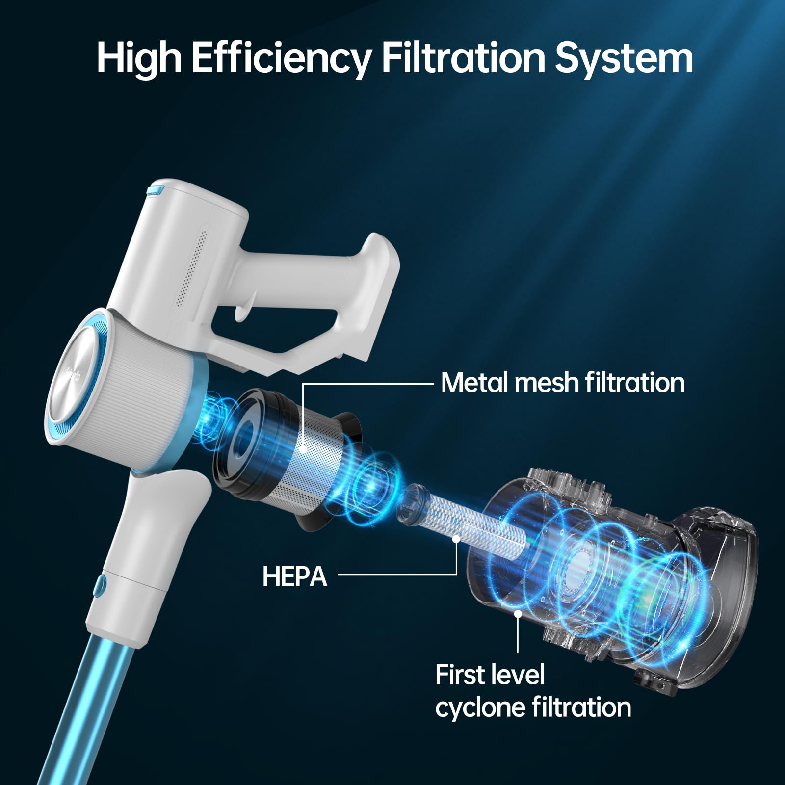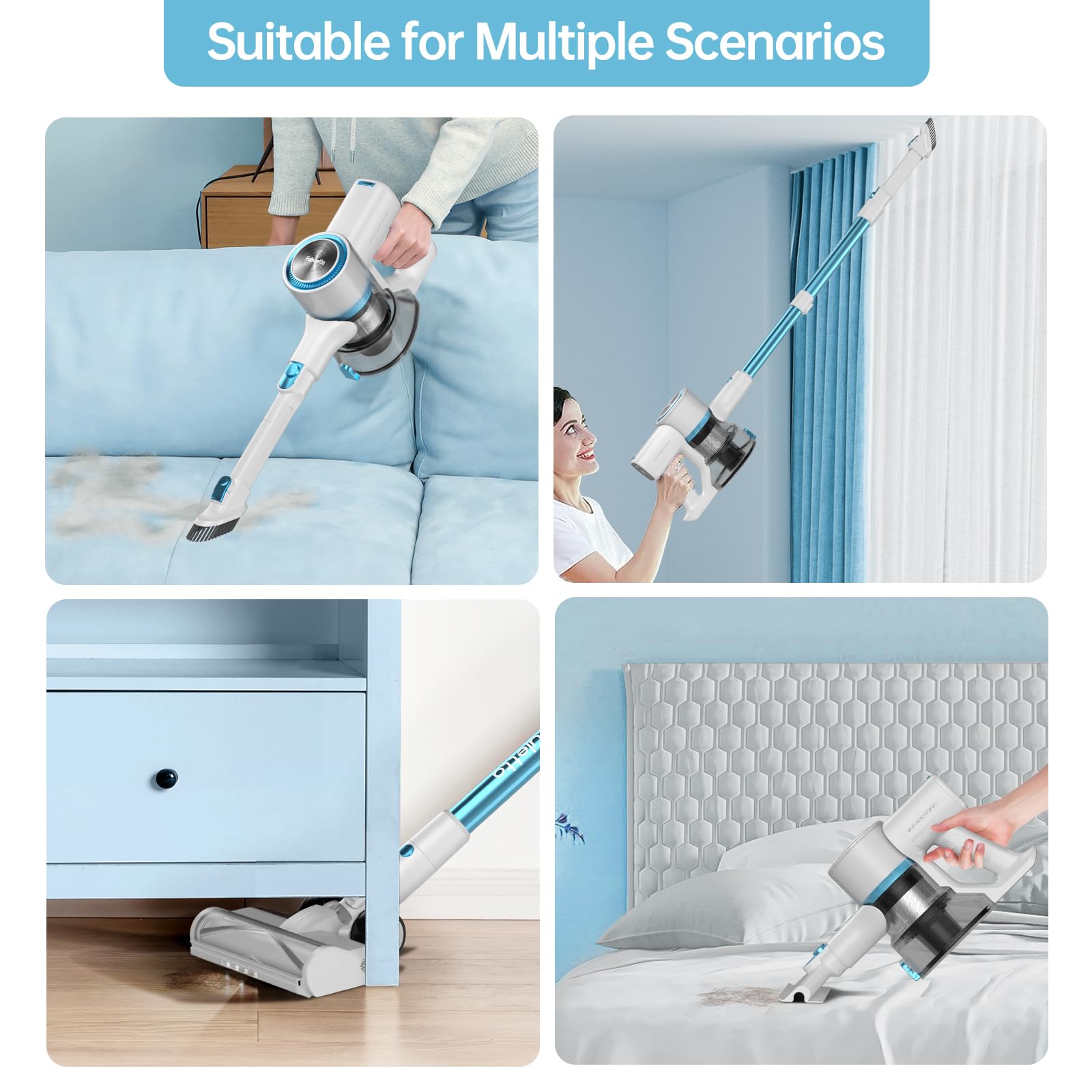 Fabuletta Cordless Vacuum Cleaner, 38Kpa Powerful Suction Up To 50 Min Runtime, 8 In 1 Lightweight Stick Vacuum Cleaner With Brushless Motor, Great For Pet Hair & Hard Floor Whiteblue