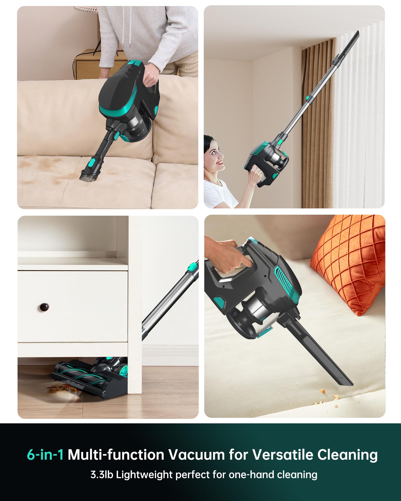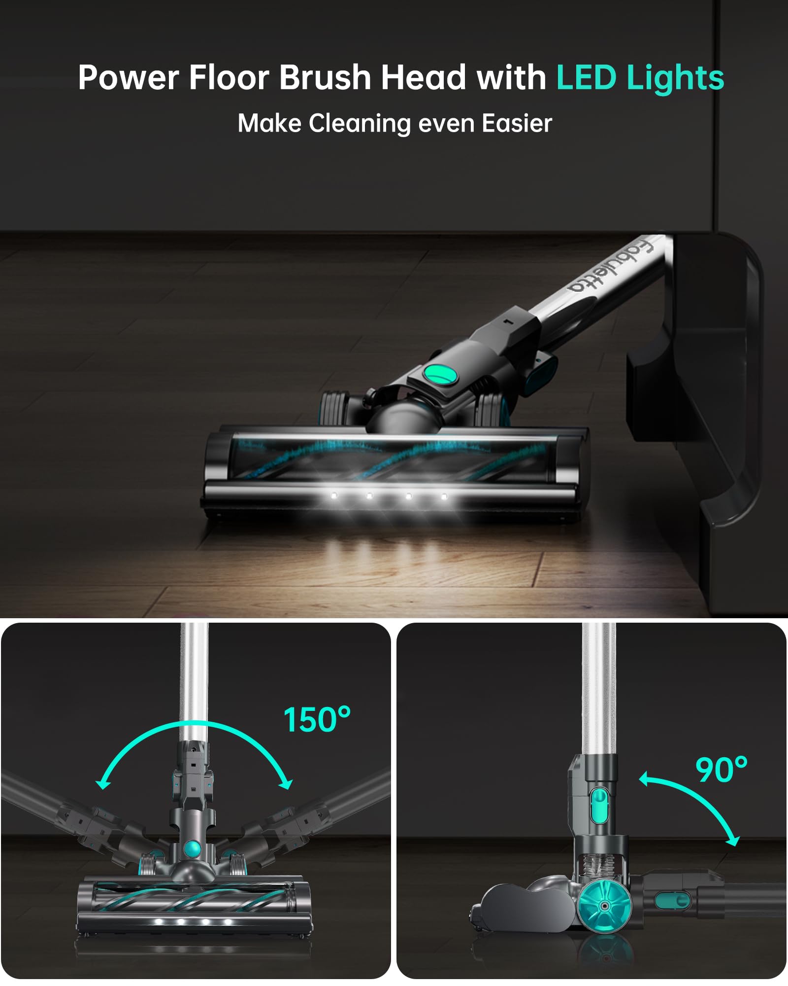 • 6in1 Multifunction Vacuum for Versatile Cleaning FABULETTA lightweight cordless stick Vacuum Cleaners for home come with Floor Brush with LED light, Long crevice tool, Dust Brush, and adjustable Telescopic Alloy Tube. Assembled into six configurations, making it easy to clean low pile carpets, floors, sofas, stairs, cars, and upholstered surfaces, bring you the best cleaning performance and efficiency