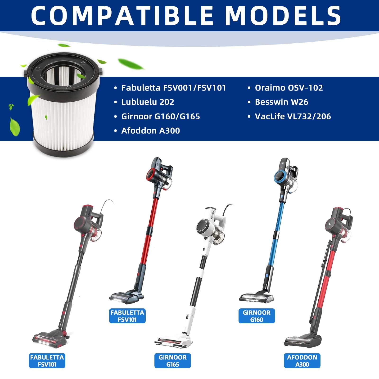 Filter Compatible With Fabuletta Fsv001, Fsv101, Girnoor G160&G165, Afoddon A300, Lubluelu 202, Oraimo Osv102, Besswin W26, Vaclife Vl732 206, Nequare Vacuum S181 Stick Vacuum