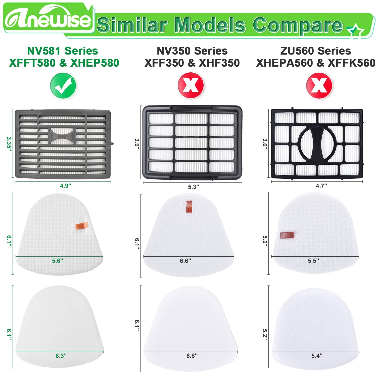 Filter For Shark Navigator Nv586 Nv581 Nv581Q Nv585 Nv580 Powered Lift Away Dlx Upright Vacuum, 1 Hepa Post Filter +2 Foam & Felt Filters, Compare To Part Xfft580 & Xhep580