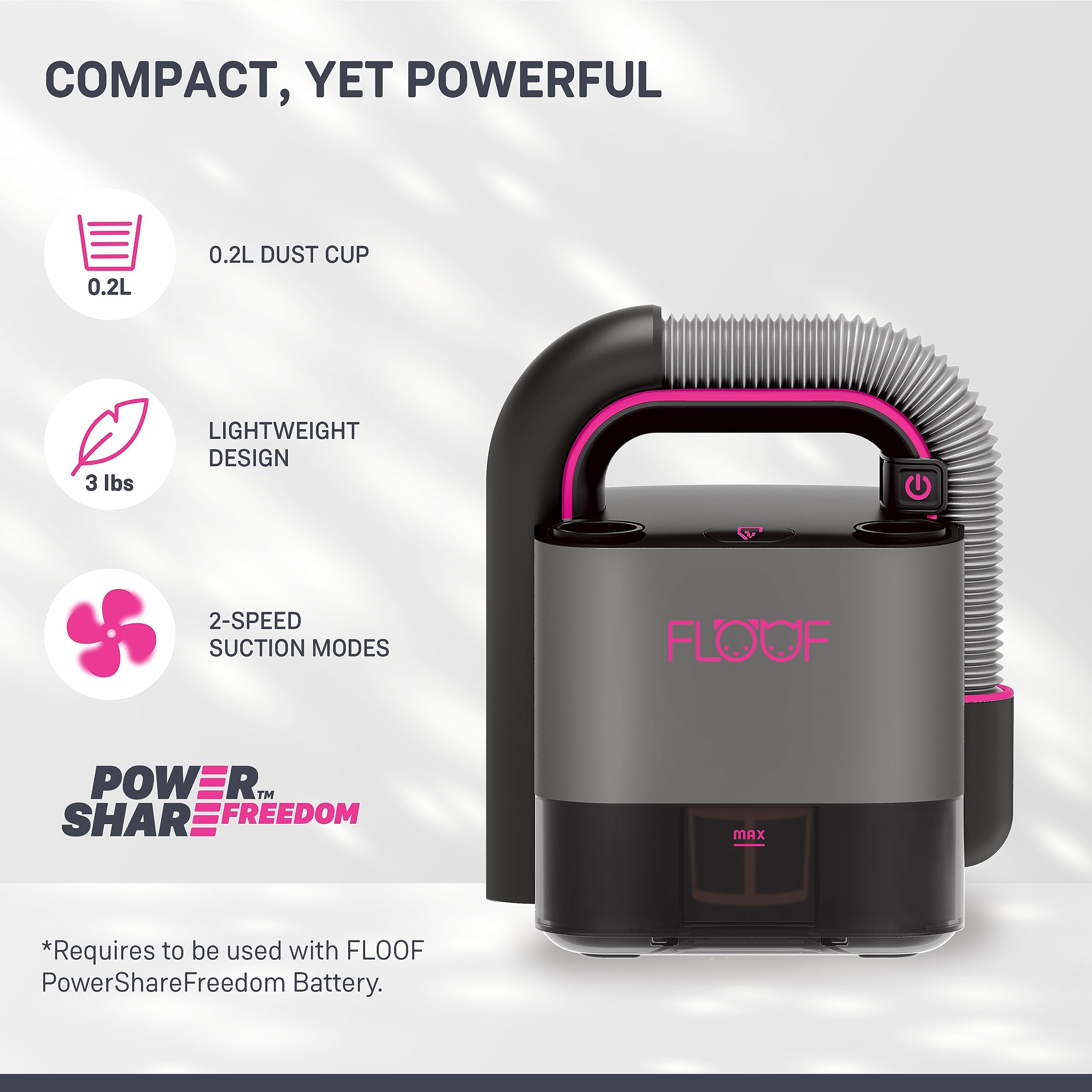 Meet FLOOF pet hair vacuum, a perfect helpmate for multipet families. Floof Hand Vacuum Cordless Retractable, 17000 Pa Pet Hair Vacuum With 2Speed, Compact And Portable Vacuum For Car, Cube Vac, 20V Powershare dom Battery And Charger Included