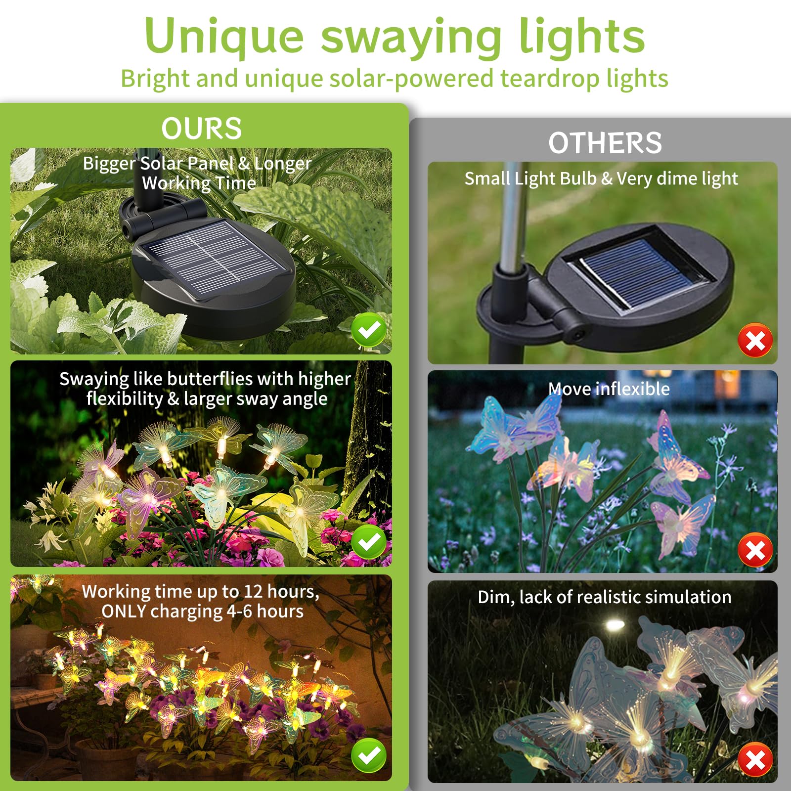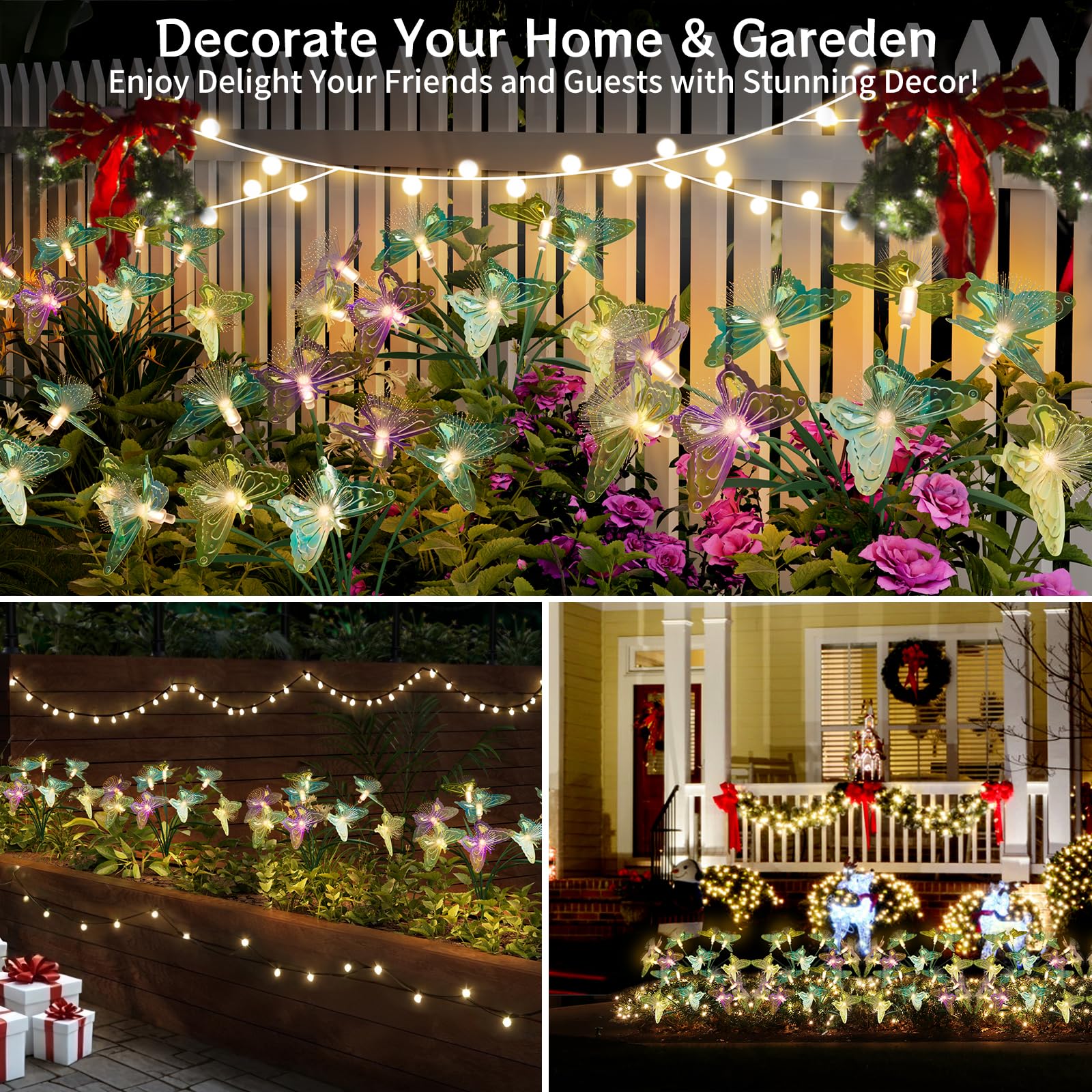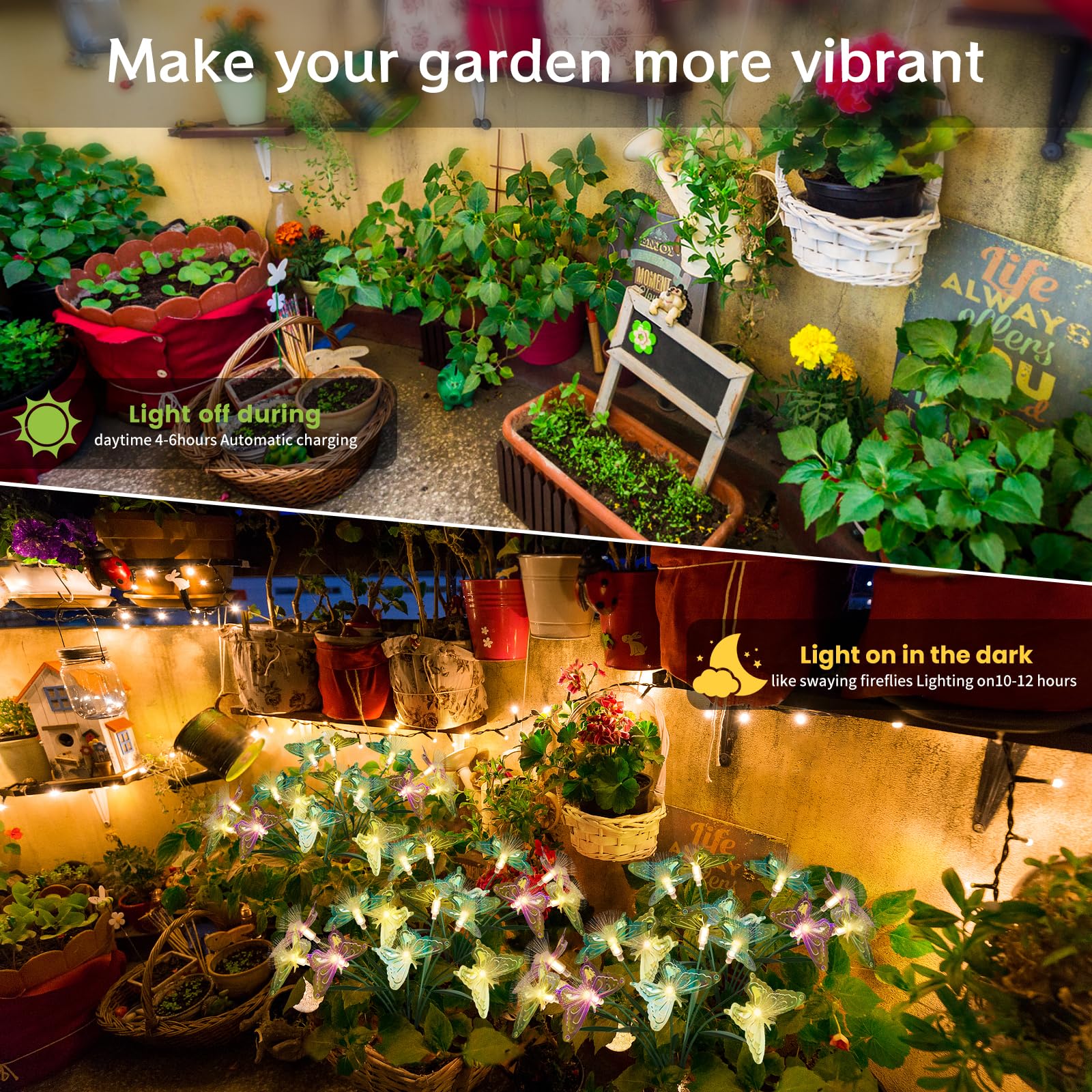 Flumy Solar Lights Outdoor Waterproof 8-Head Butterfly Decorations,Solar Garden Lights,Christmas Christmas ,Birthday Decorations,Butterfly Solar Lights for Garden and Yard 4Pack