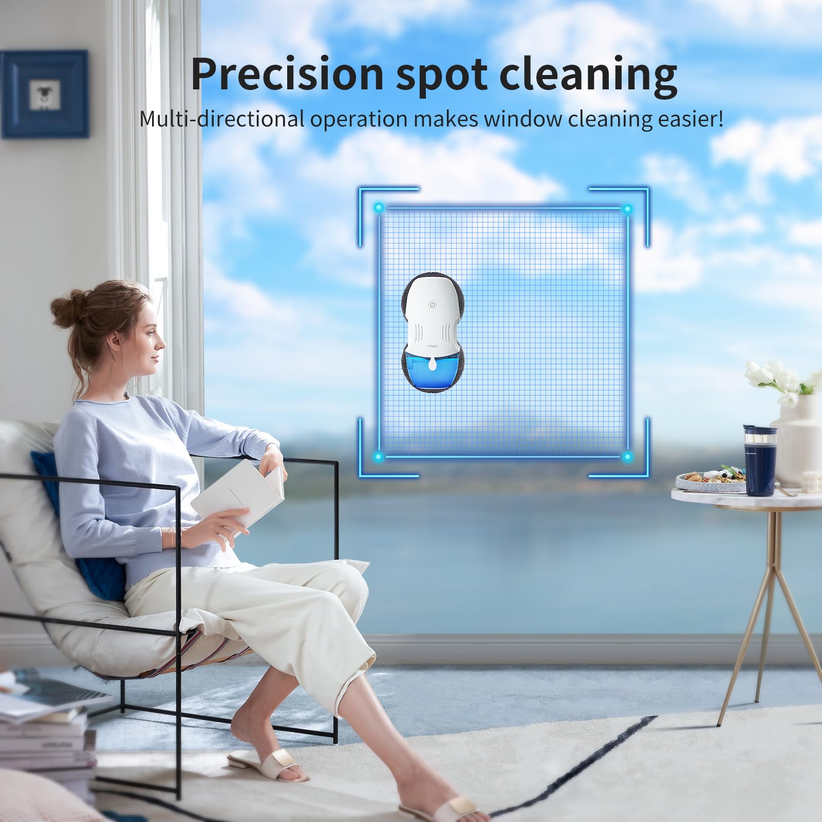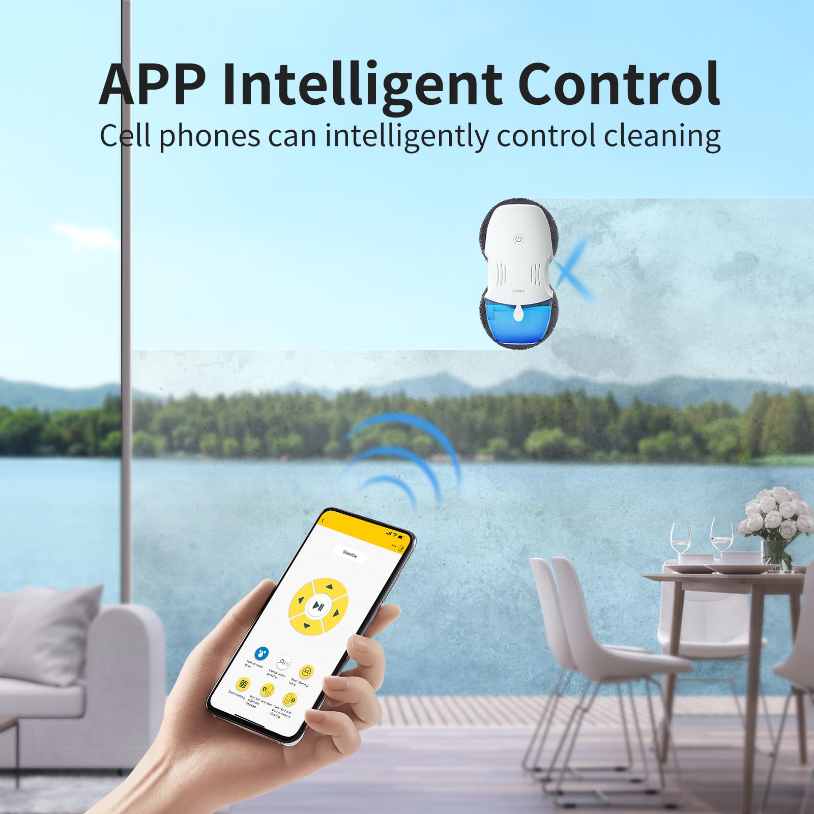 Fmart Window Cleaning Robot 120Ml Capacity Water Tank Window Cleaner Robot Intelligent Double Water Spray Technology 3800Pa Suction Power Ai Edge Detection Technology App Control Robot Window Cleaner
