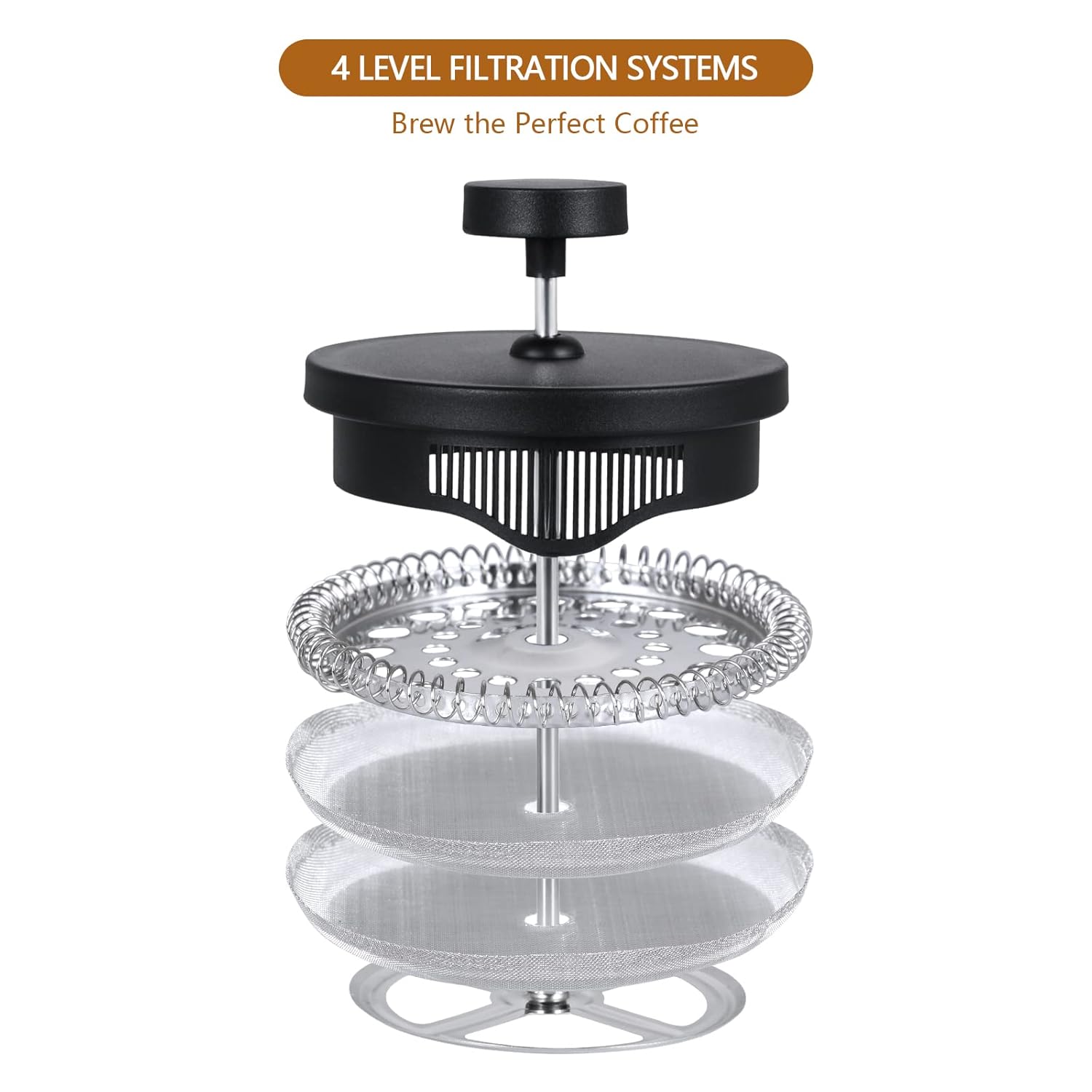 French Press Coffee Maker 21 oz, Cold Brew Heat Resistant Thickened Borosilicate Coffee Pot, Coffee Presses 600 ml, Tea and Frothed Milk Press (Black,21Ounce)