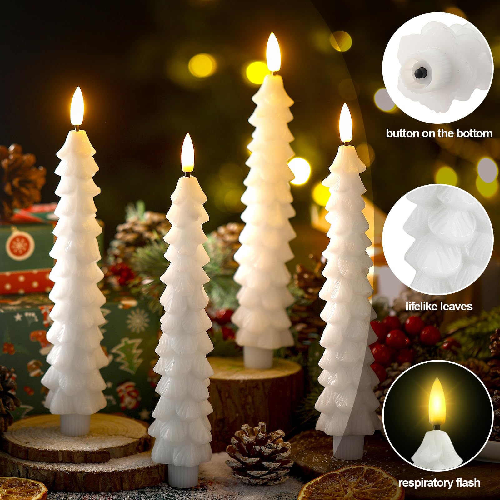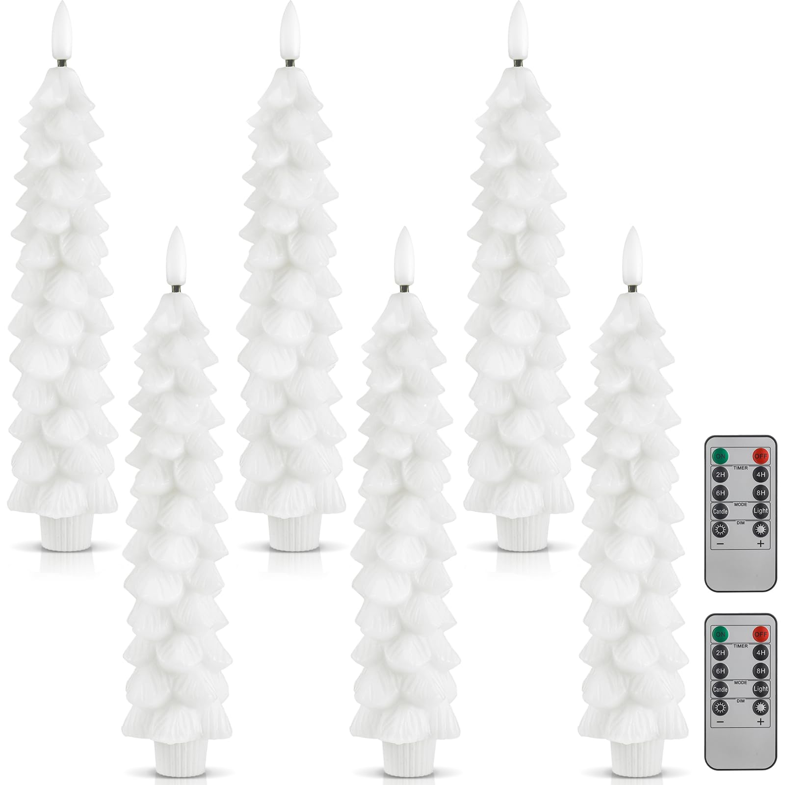 Funtery 6 Pcs Christmas Flameless Taper Candles with Remote Timer 9.7 Inch Real Wax Battery Operated Christmas Tree Candle Lights Candlesticks with 3D Flame for Home Windows Fireplace Decor (White)