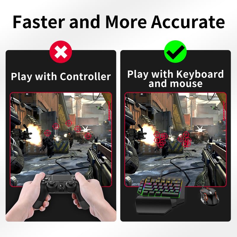 Game Controller Emulator for Xbox Series/Xbox One/Xbox 360/PS4/PS3/Nintendo Switch, Keyboard and Mouse Adapter for FPS/TPS/STG/RTS Games