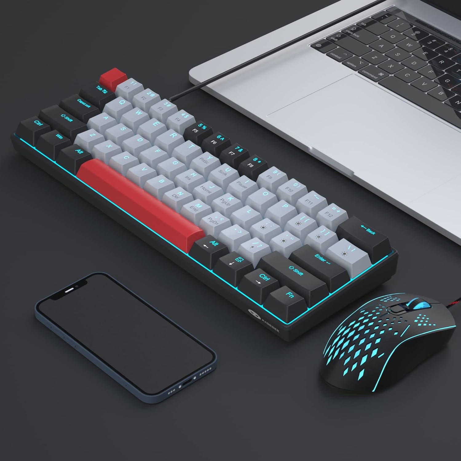 Gaming Keyboard and Mouse Combo, 60% Compact Mechanical Keyboard with Blue LED Backlit, PC Gaming Keyboard and Mouse,Detachable Type C to A Cable Wired Keyboard for PC/Laptop