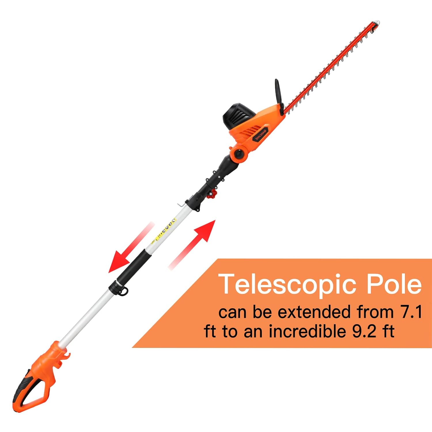 GARCARE Electric Corded Hedge Trimmer with Extension Pole 20 Inch Dual-Action Laser Blade Bush Trimmer 600W, 4.8Amp Garden Trimmers