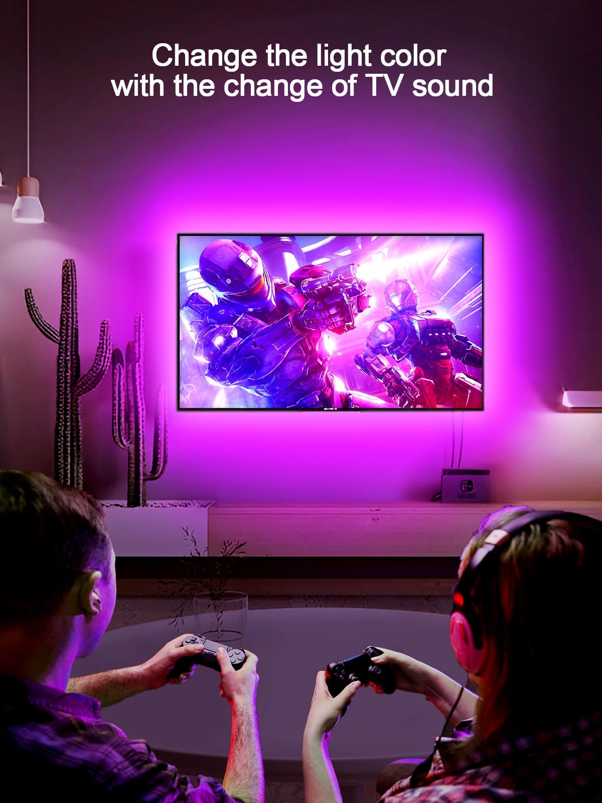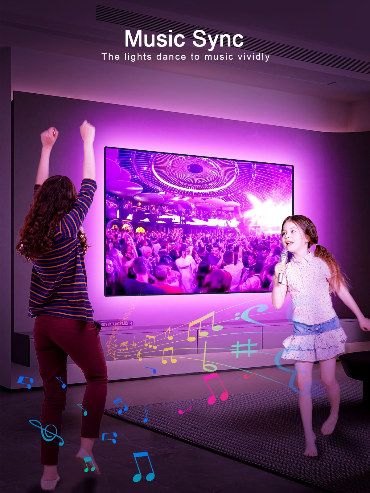 GIPOYENT TV Light Strip, Music Sync LED TV Backlights, for 32-50 Inch TV, LED TV Light with Bluetooth Function - RGB Color Changing Light Strip for Home Theater (9.8ft)