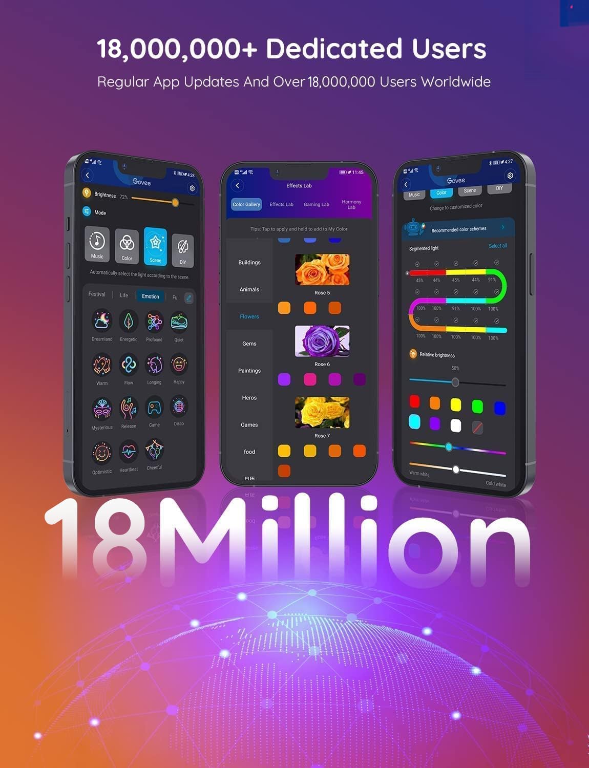Govee 65.6ft RGBIC LED Strip Lights, Color Changing LED Strips, App Control via Bluetooth, Smart Segmented Control, Multiple Scenes, Enhanced Music Sync LED Lights for Bedroom, Christmas (2 X 32.8ft)