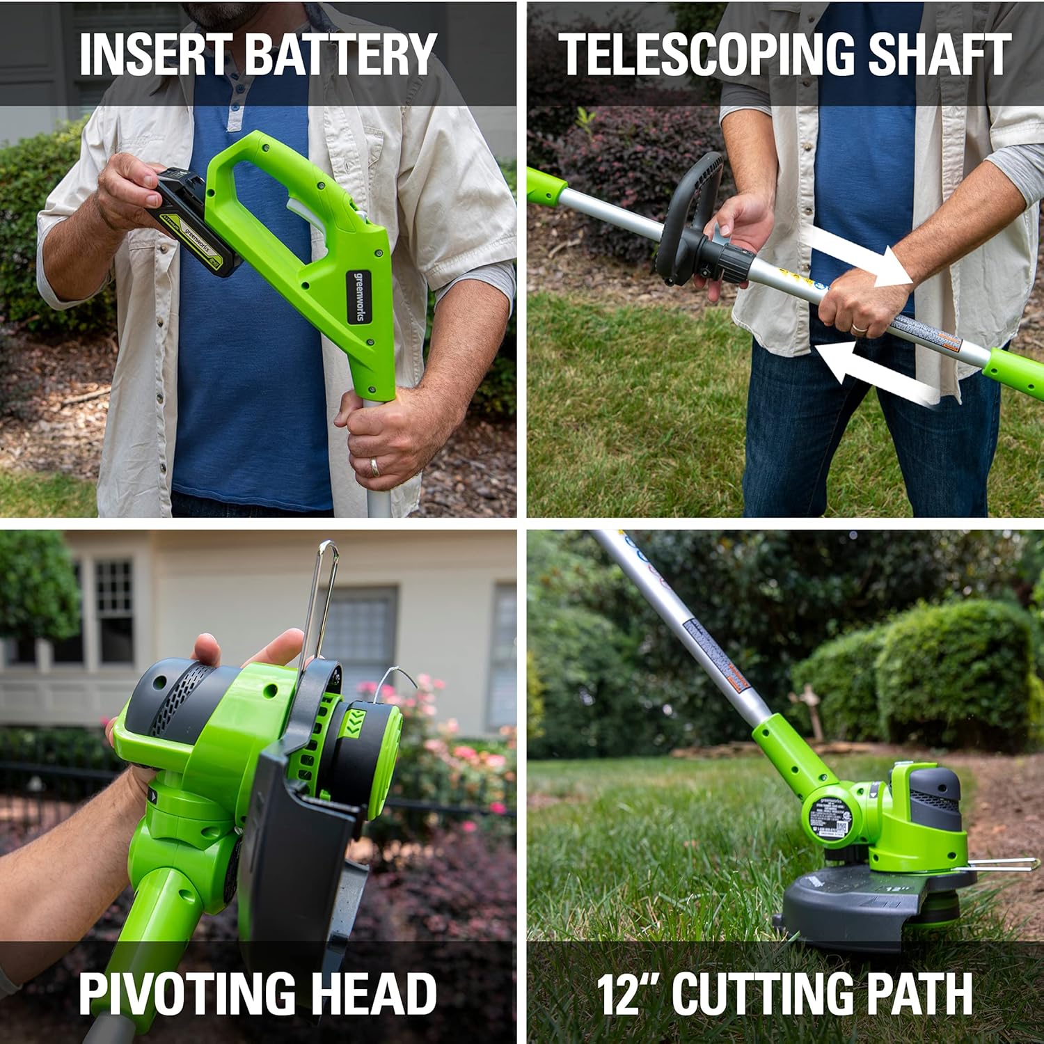 Greenworks 24V 12-Inch Cordless String Trimmer, 2.0 AH Battery Included, ST24B210