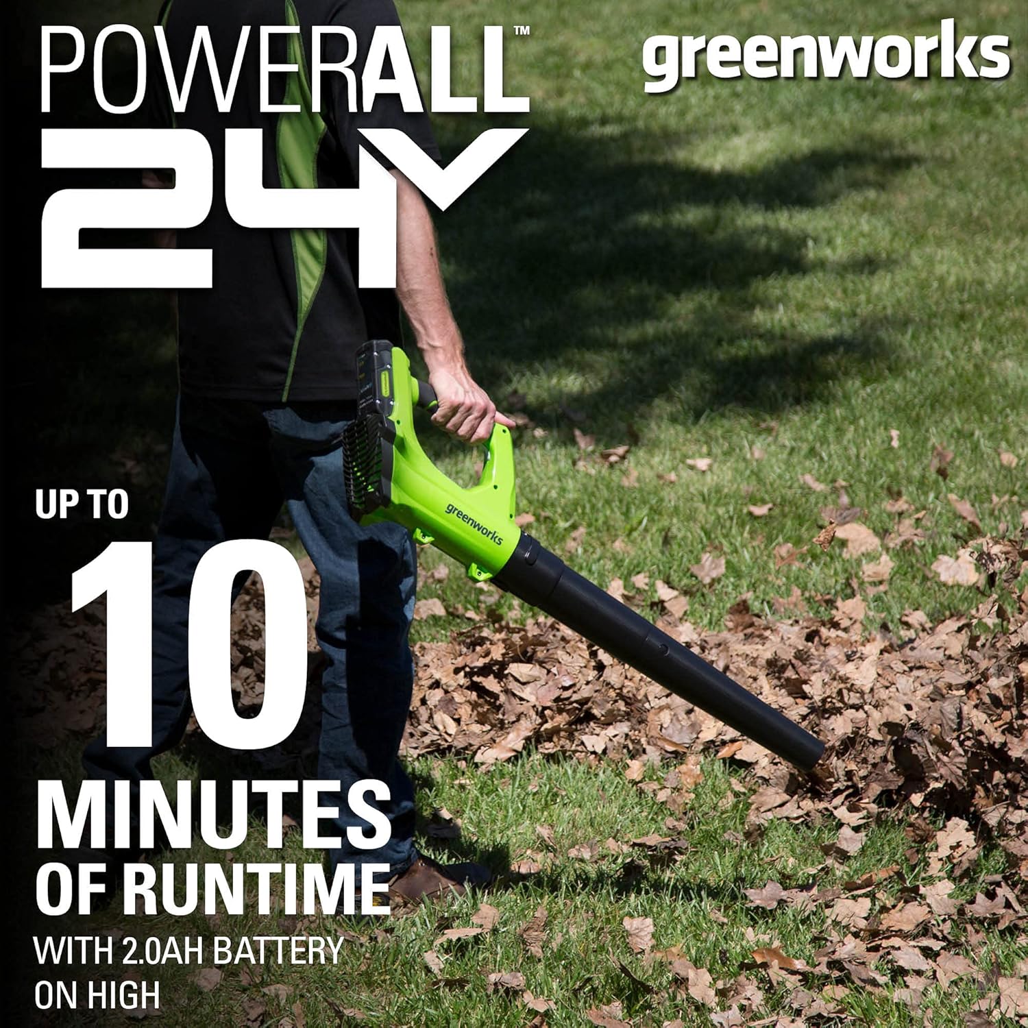 Greenworks 24V Axial Leaf Blower (100 MPH / 330 CFM), 2Ah Battery and Charger Included