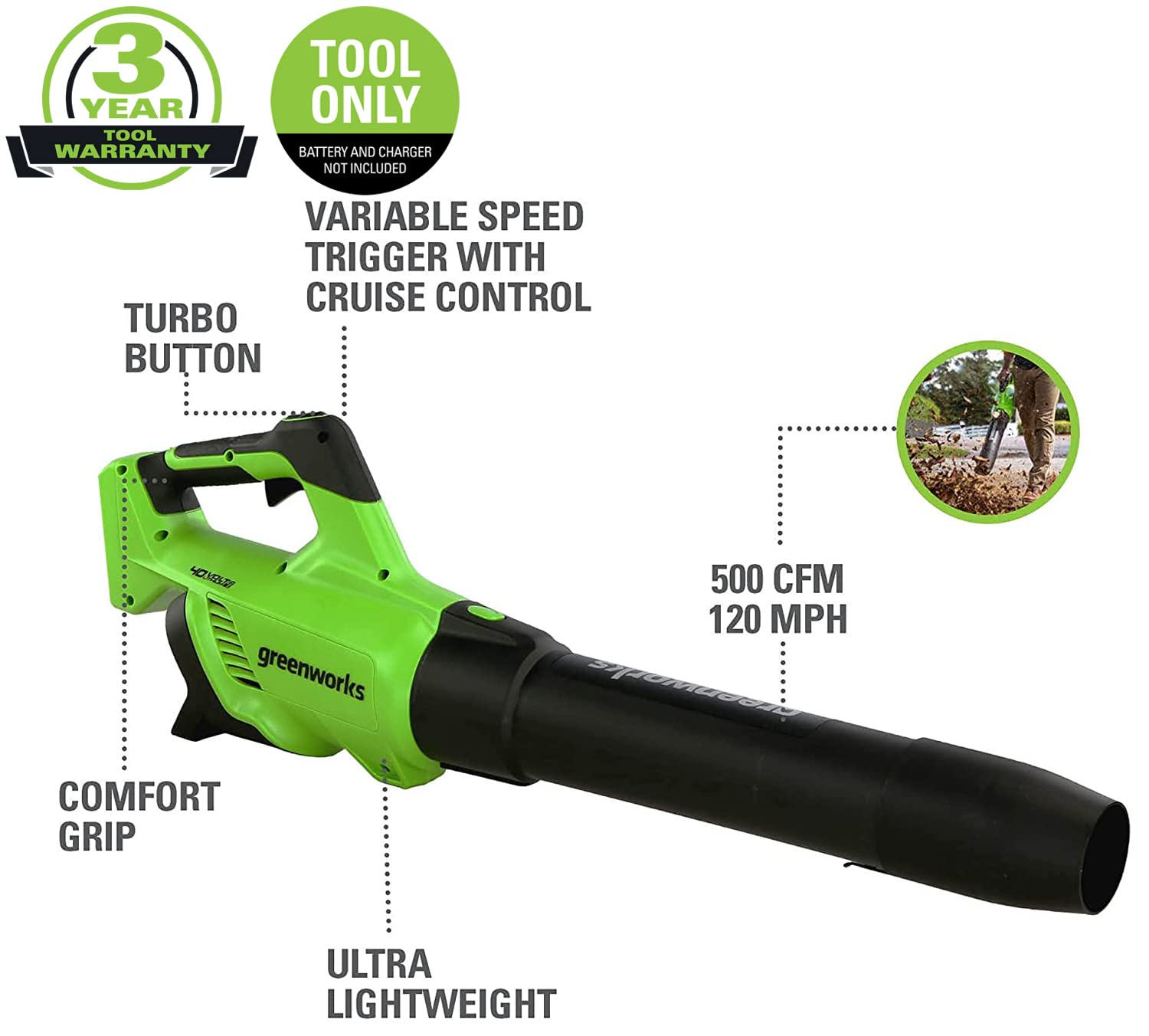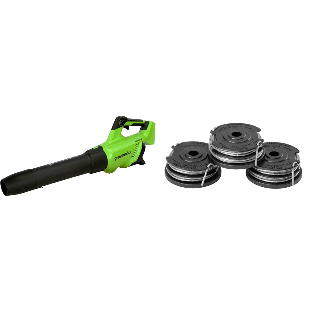 Greenworks BLF349 40V (120 MPH / 500 CFM) Axial Leaf Blower, Tool Only & 0.065" Dual Line Replacement String Trimmer Line Spool, 3 Count (Pack of 1)