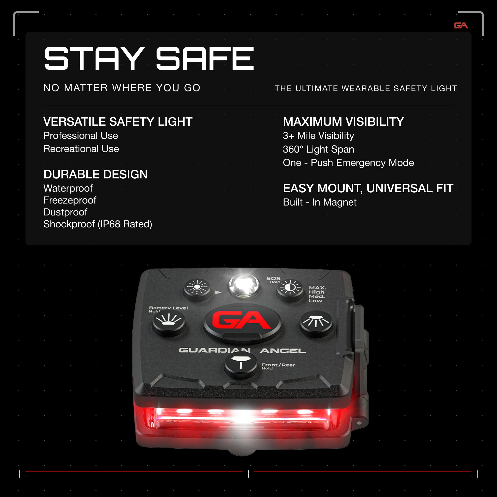 Guardian Angel Elite Micro Personal Safety Light Bar | Magnetic Hands-Free Mountable Flashlight | Lightweight with Rechargeable Battery (Red/Green)