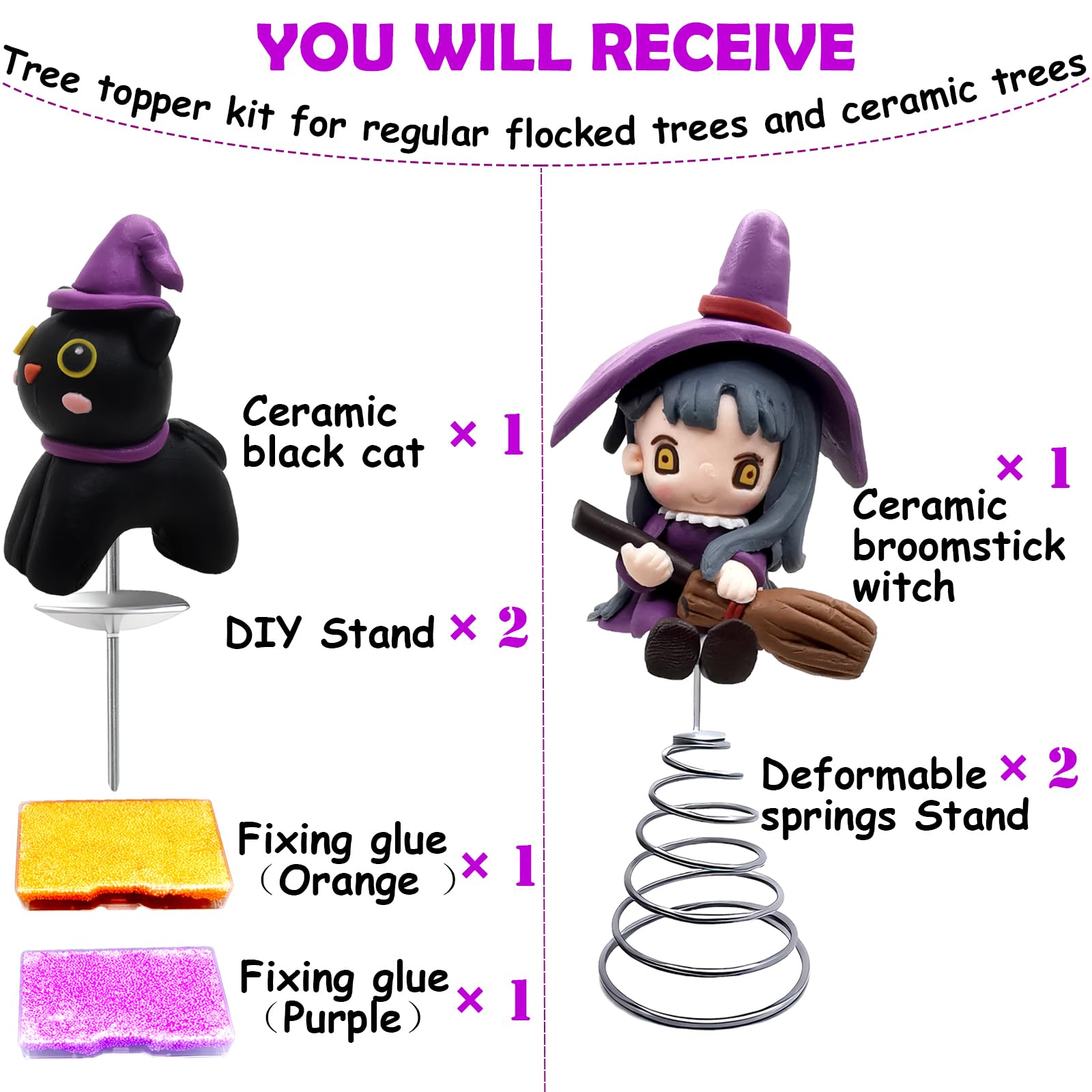 Halloween Ceramic Christmas Tree Replacement Tree Topper, 2Pcs Festive Themed Treetops Ornaments - Topstar for Desktop Trees DIY Decorations (Witchcraft)
