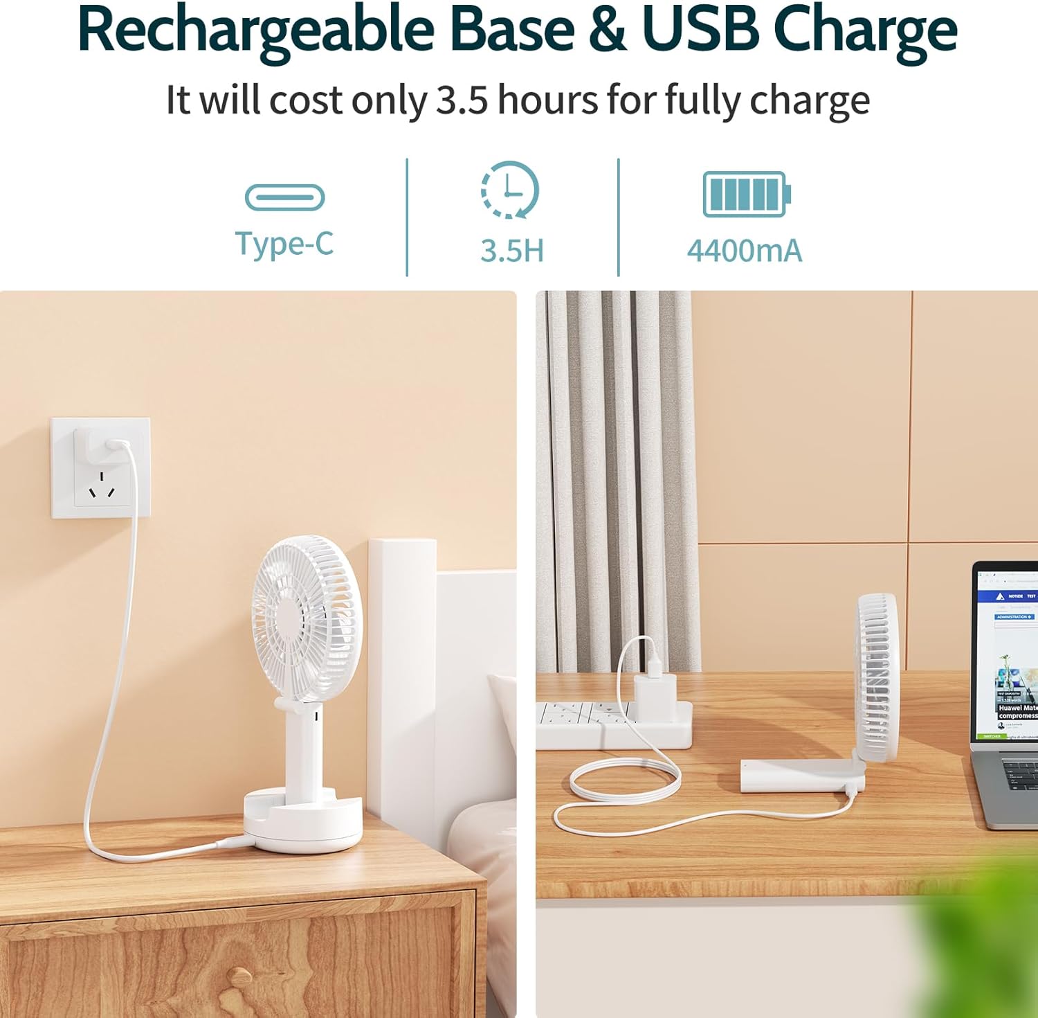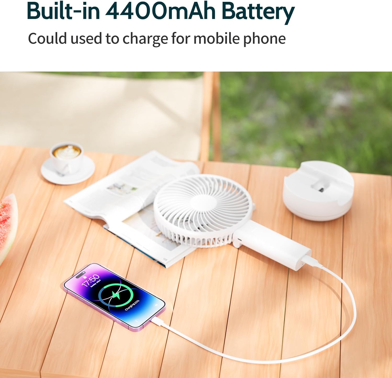 Handfan 6 Inch Handheld Fan 4400Mah Battery Operated Fan 6 Settings Personal Desktop Fan With 534H Working Time Removable Base