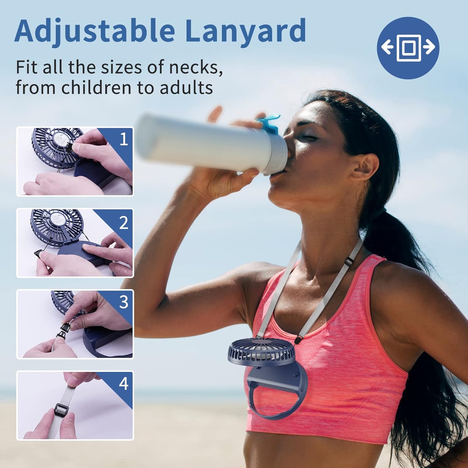 Handfan Portable Necklace Fan, Rechargeable Mini Personal Neck Fan, Hands Free Battery Operated Wearable Fan For Travel Outdoor