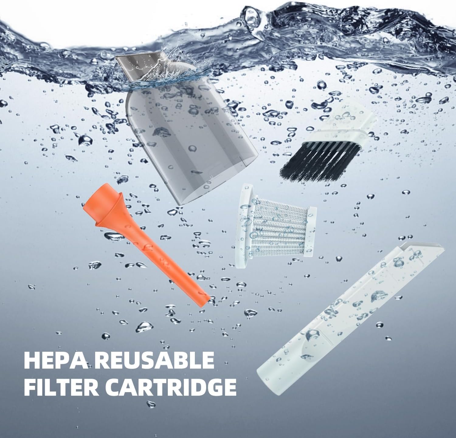 • 🌀【REUSABLE & WASHABLE HEPA FILTER】This cordless car vacuum cleaner uses a filter that meets the HEPA standard, capturing 99.97 of particles as small as 0.3 microns, leaving no fine dust behind and making your bedroom cleaner. What's more, this cordless car vacuum cleaner's filtration system is equipped with washable and removable cartridges that are easy to empty, replace and clean, so you don't have to replace them as often, making it more environmentally friendly and economical.